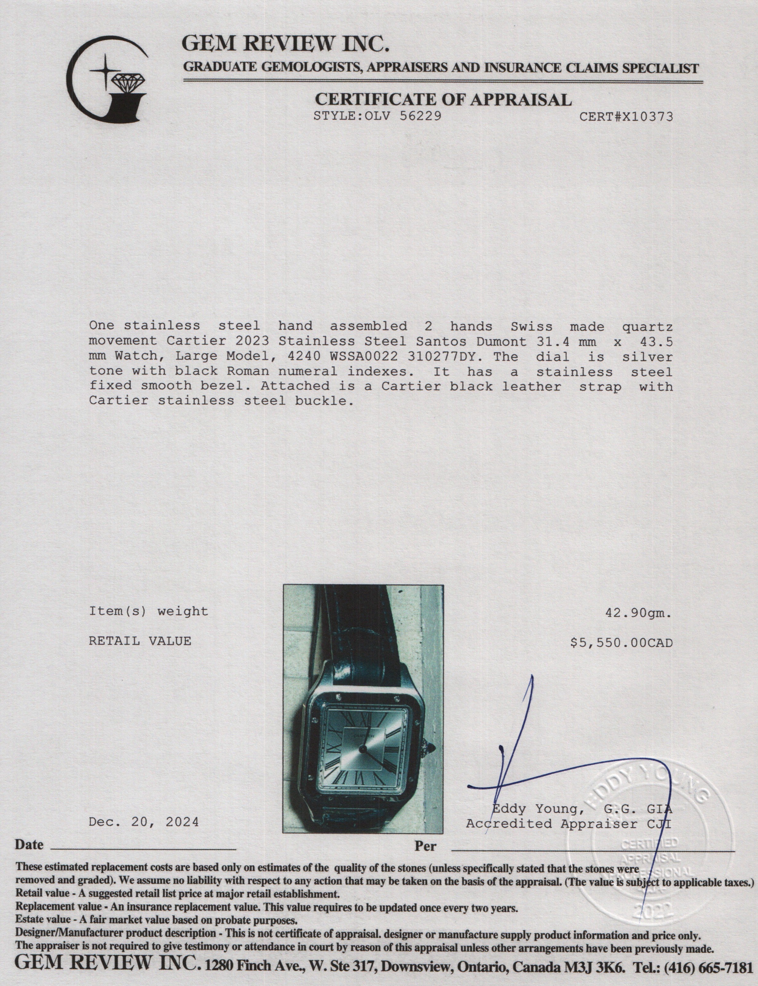 2023 Stainless Steel Santos Dumont Watch, Large Model w/ Box & Papers