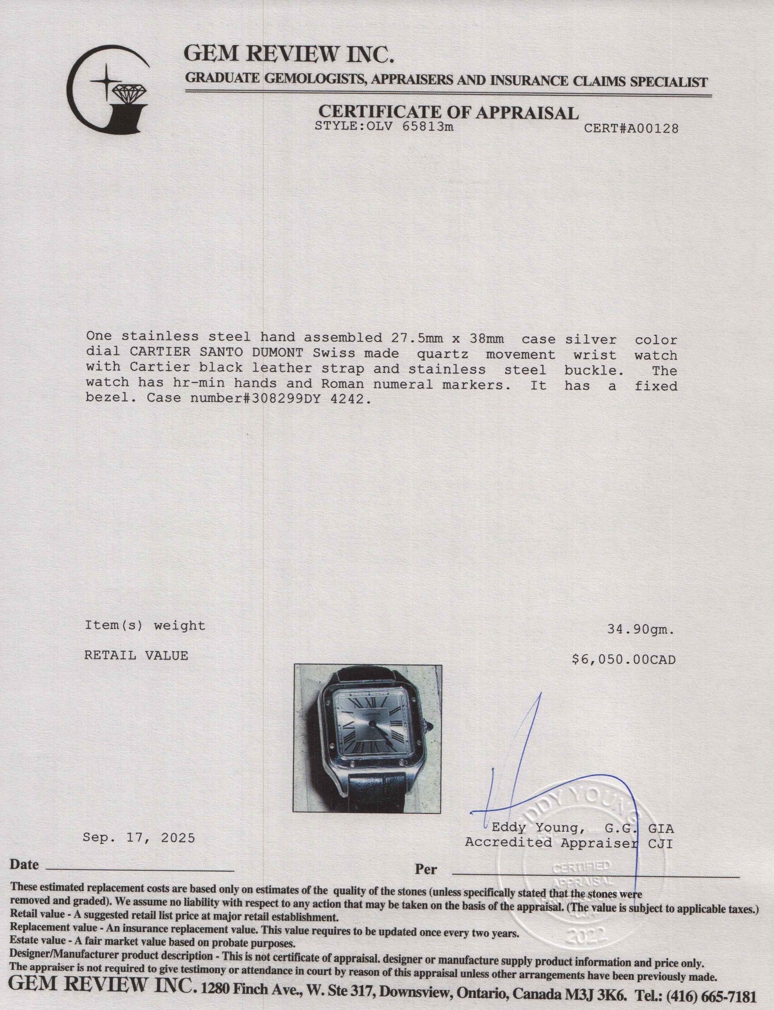 2023 Stainless Steel Santos Dumont Watch, Small Model 4242 w/ Box, Papers & Extra Strap