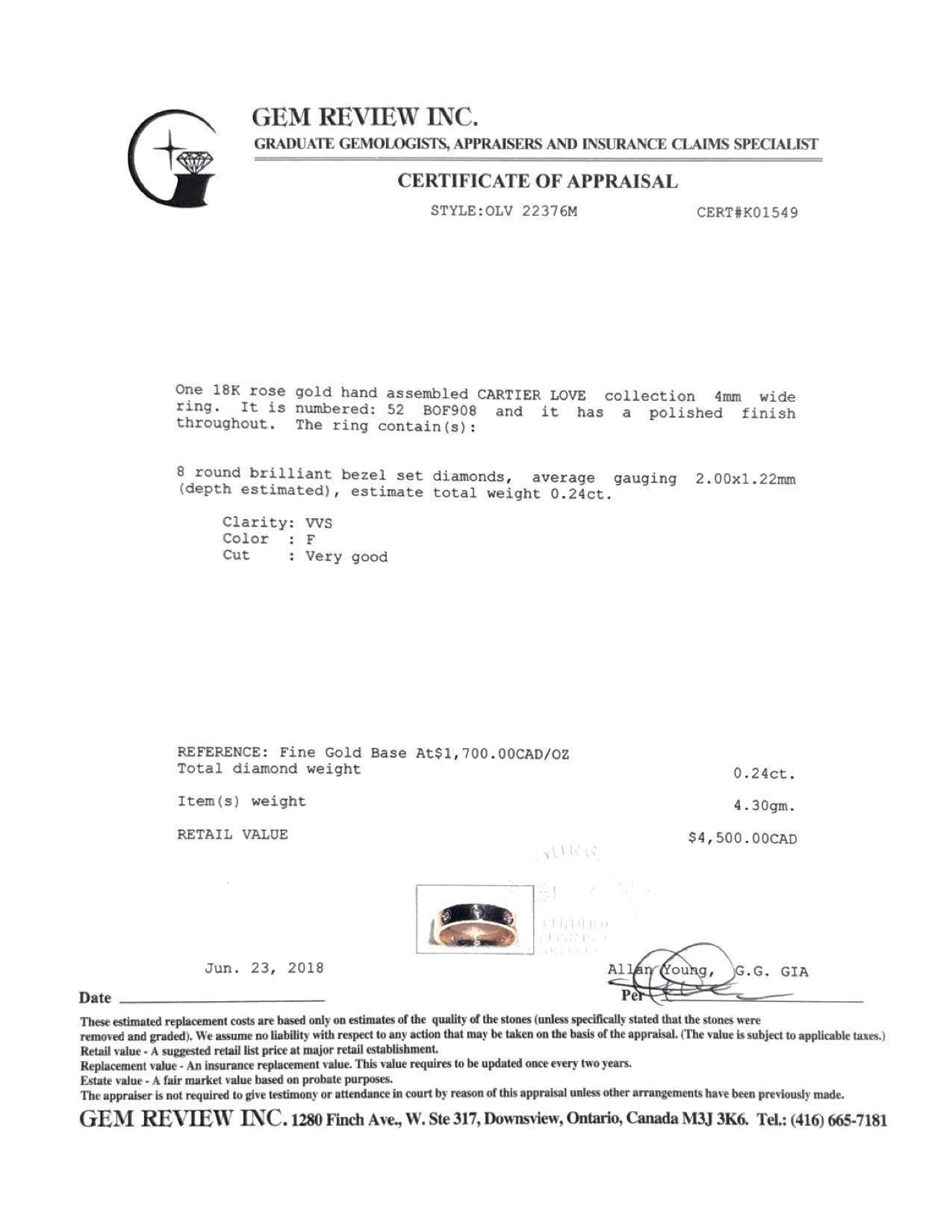 - Signature/Hallmarks: Cartier Au750 52 BOF908