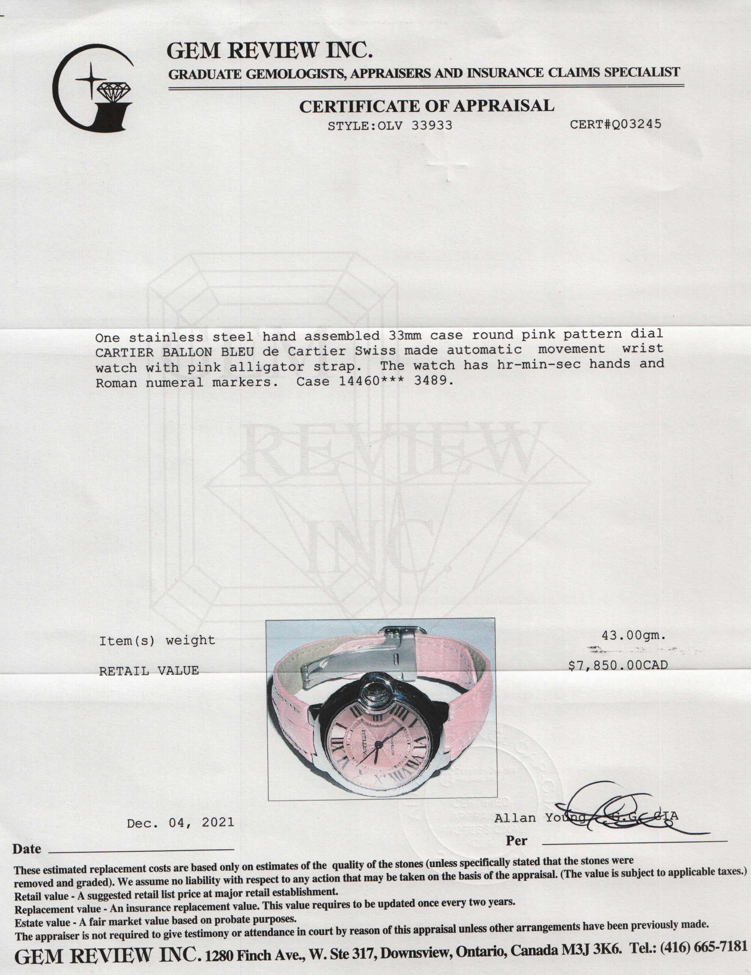 Included Items: Original Cartier Box & Booklet and Gem Review Appraisal