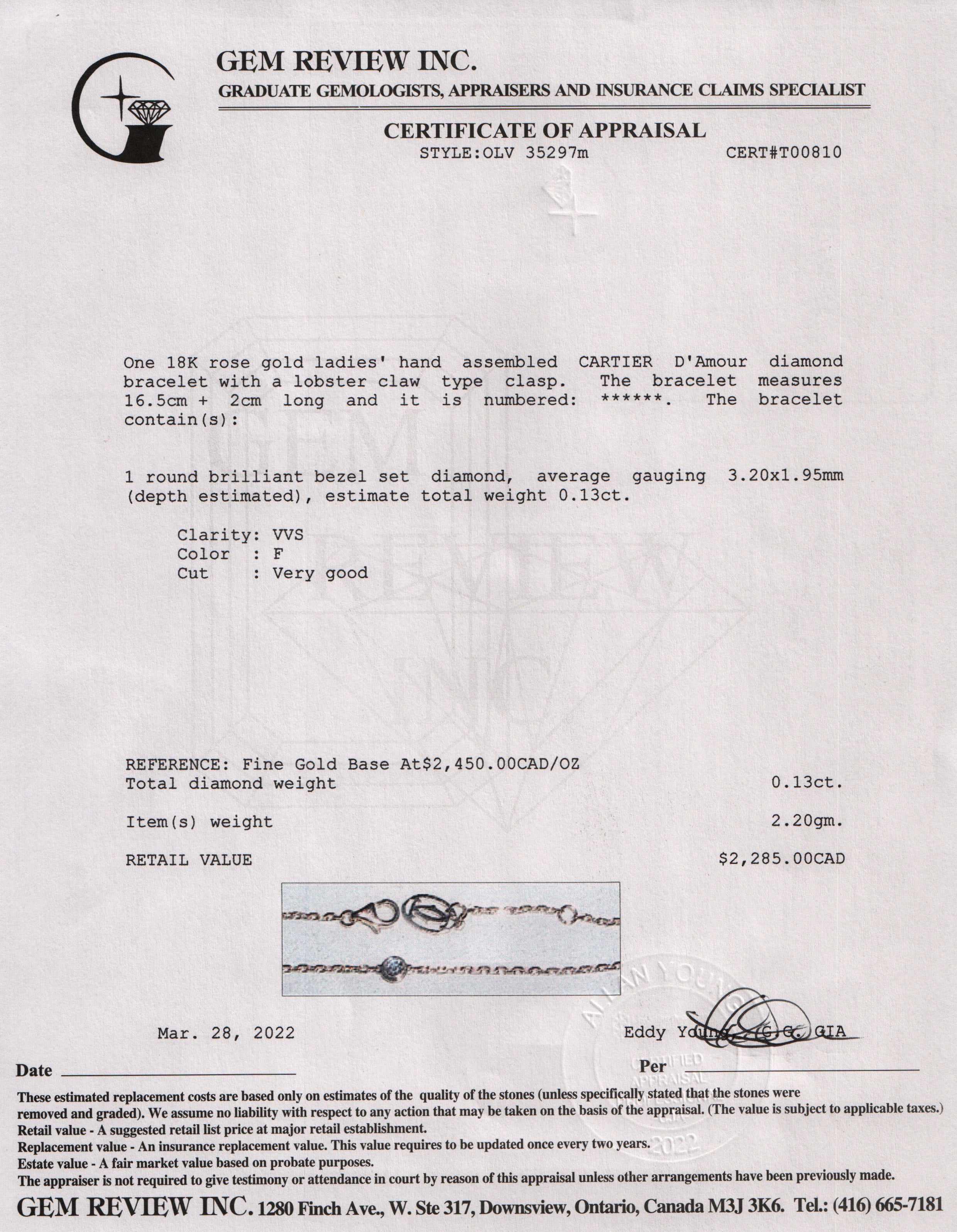 Cartier D'Amour Diamond Bracelet w/ Box & Certificate