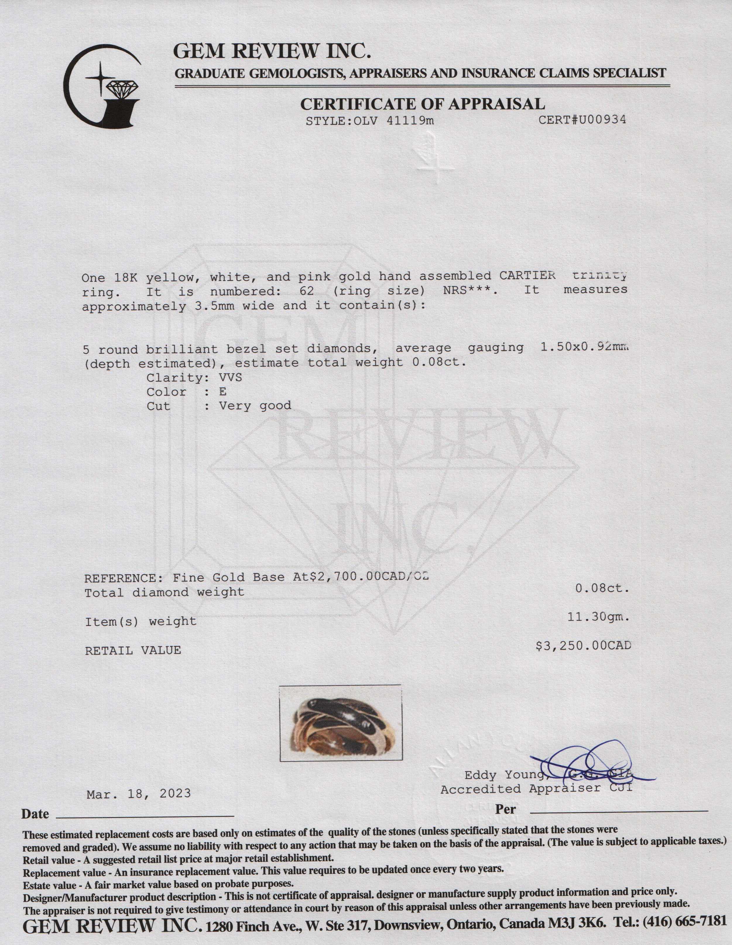 Included Items: Original Cartier Receipt & Gem Review Appraisal