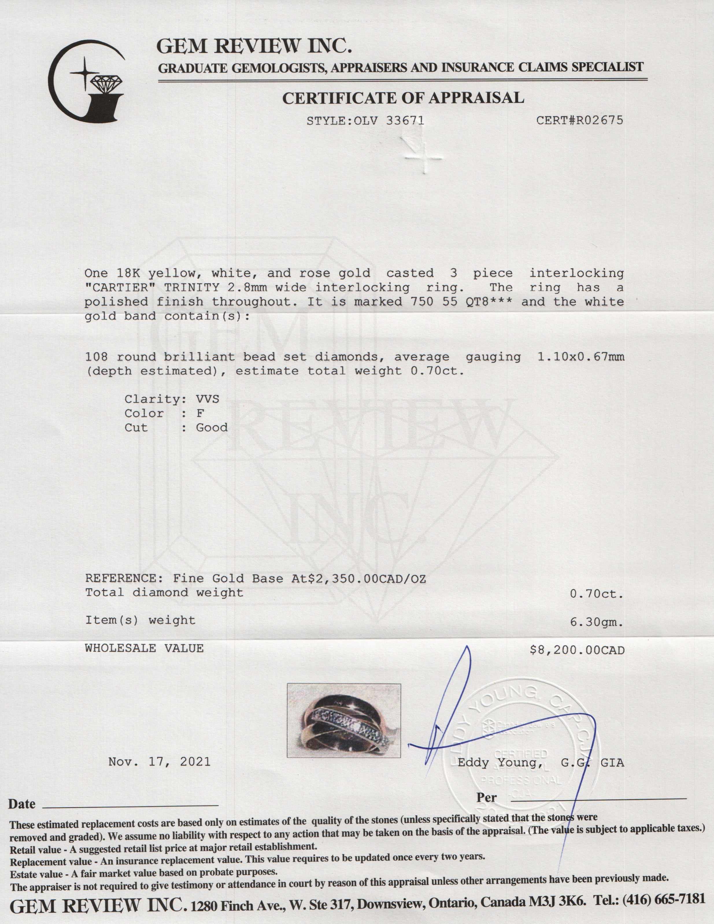 Diamond Trinity Rolling Ring w/ Box & Certificate