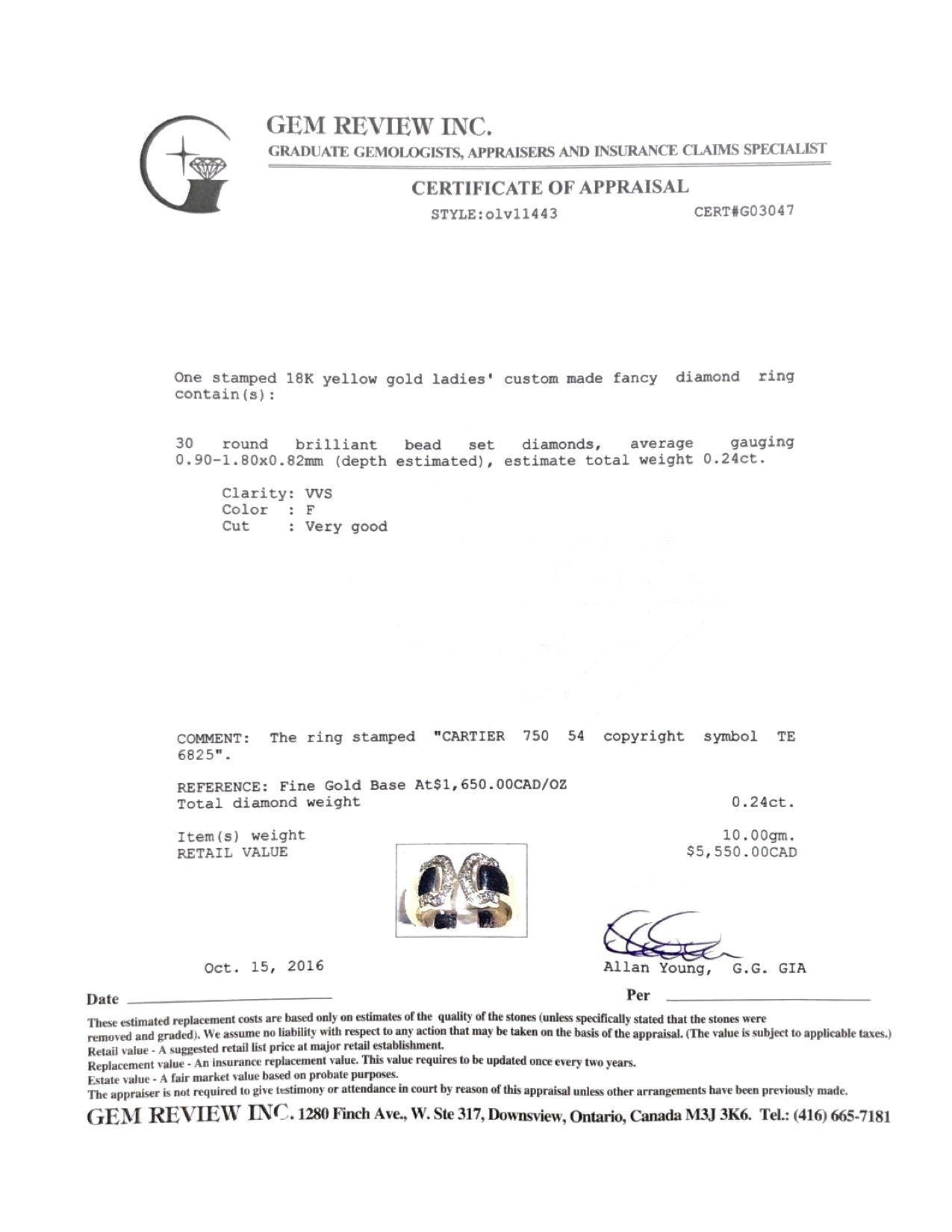 Cartier Double C Logo Ring with Diamonds in 18kt Yellow Gold; Cartier Size 54 (Approximately North American Size 7; Comes with Gem Review Appraisal