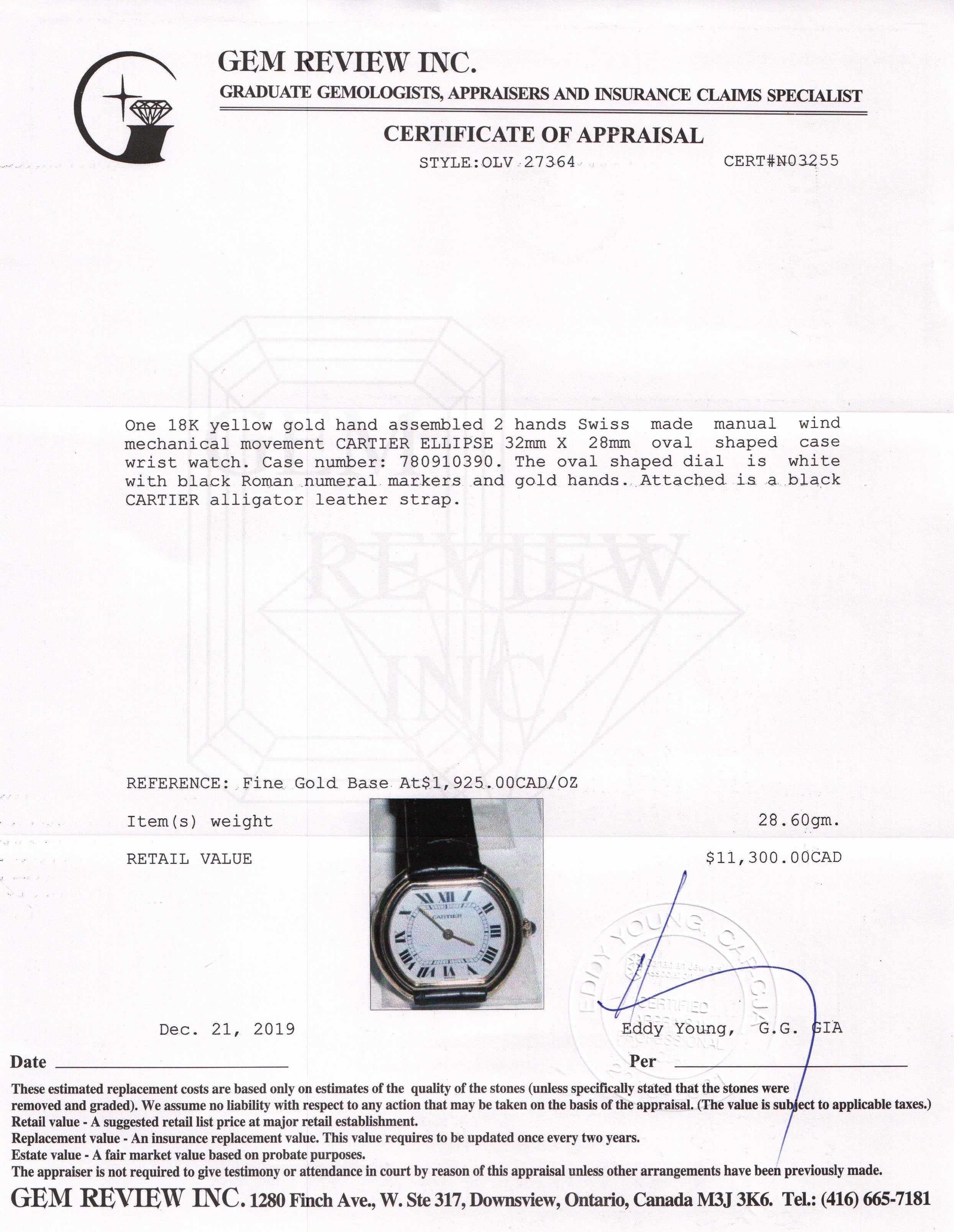 Included Items: Original Cartier Pouch & Receipt for Strap and Gem Review Appraisal