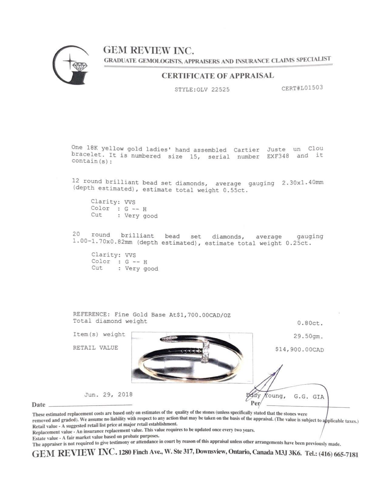 - Signature/Hallmarks: Cartier 15 EXF348 Au750