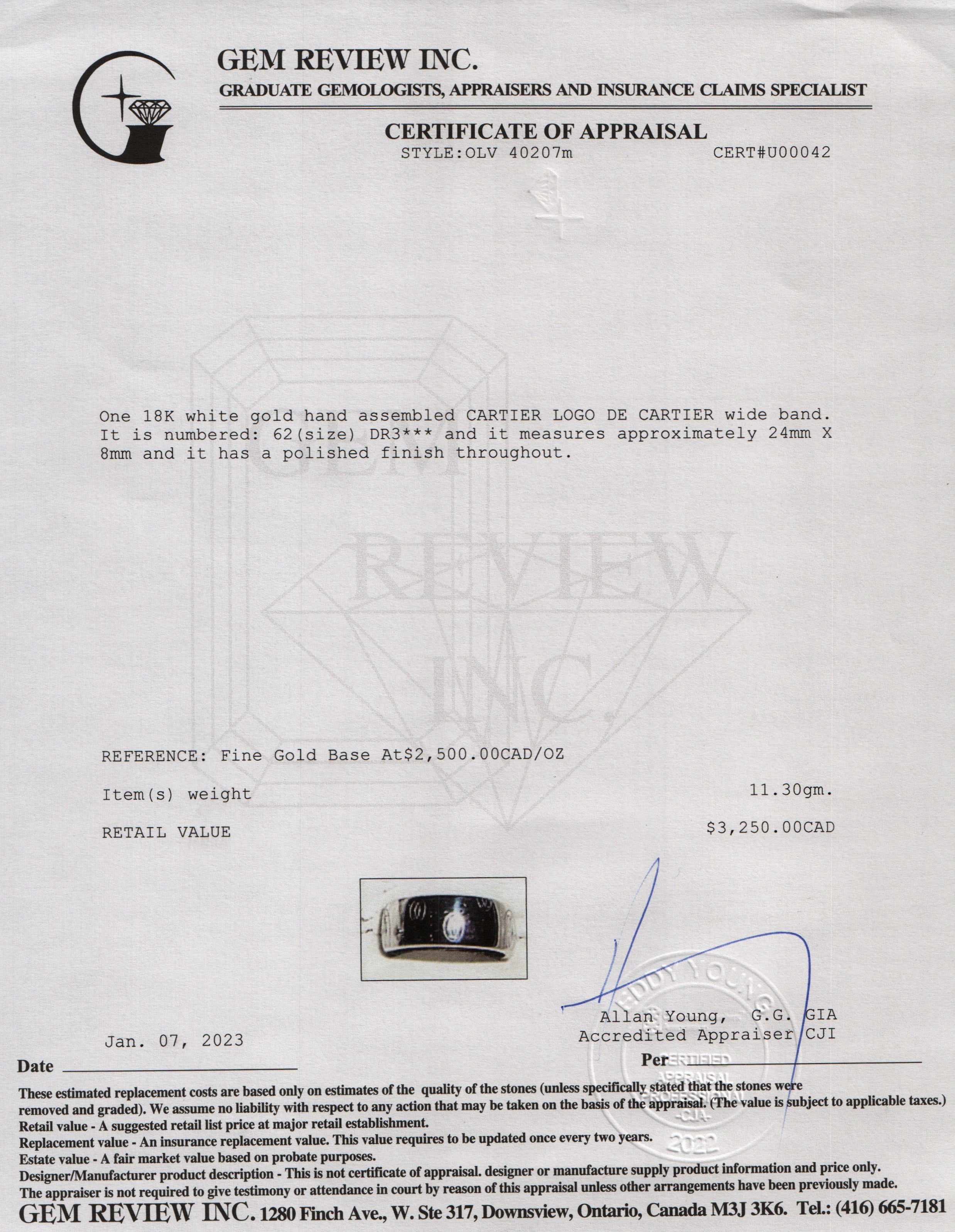 Included Items: Original Cartier Box, Certificate & Gem Review Appraisal