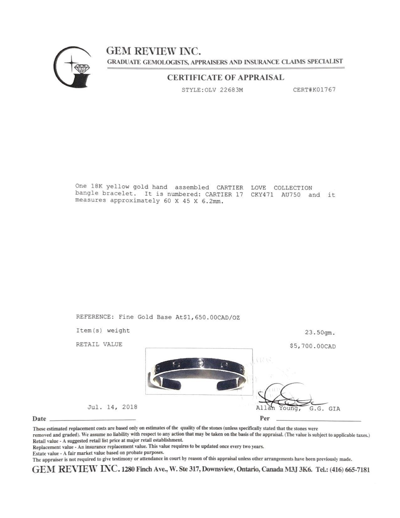 - Signature/Hallmarks: Cartier 17 CKY471 Au750