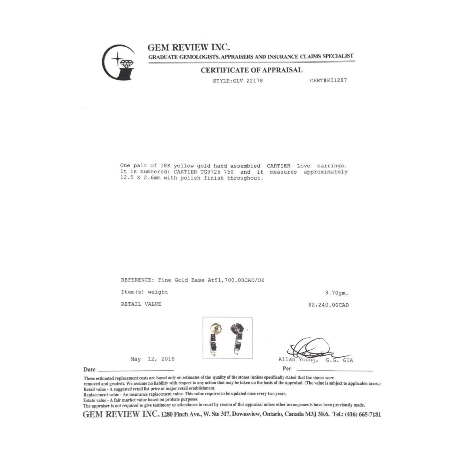 Included Items: Gem Review Appraisal and Original Cartier Certificate