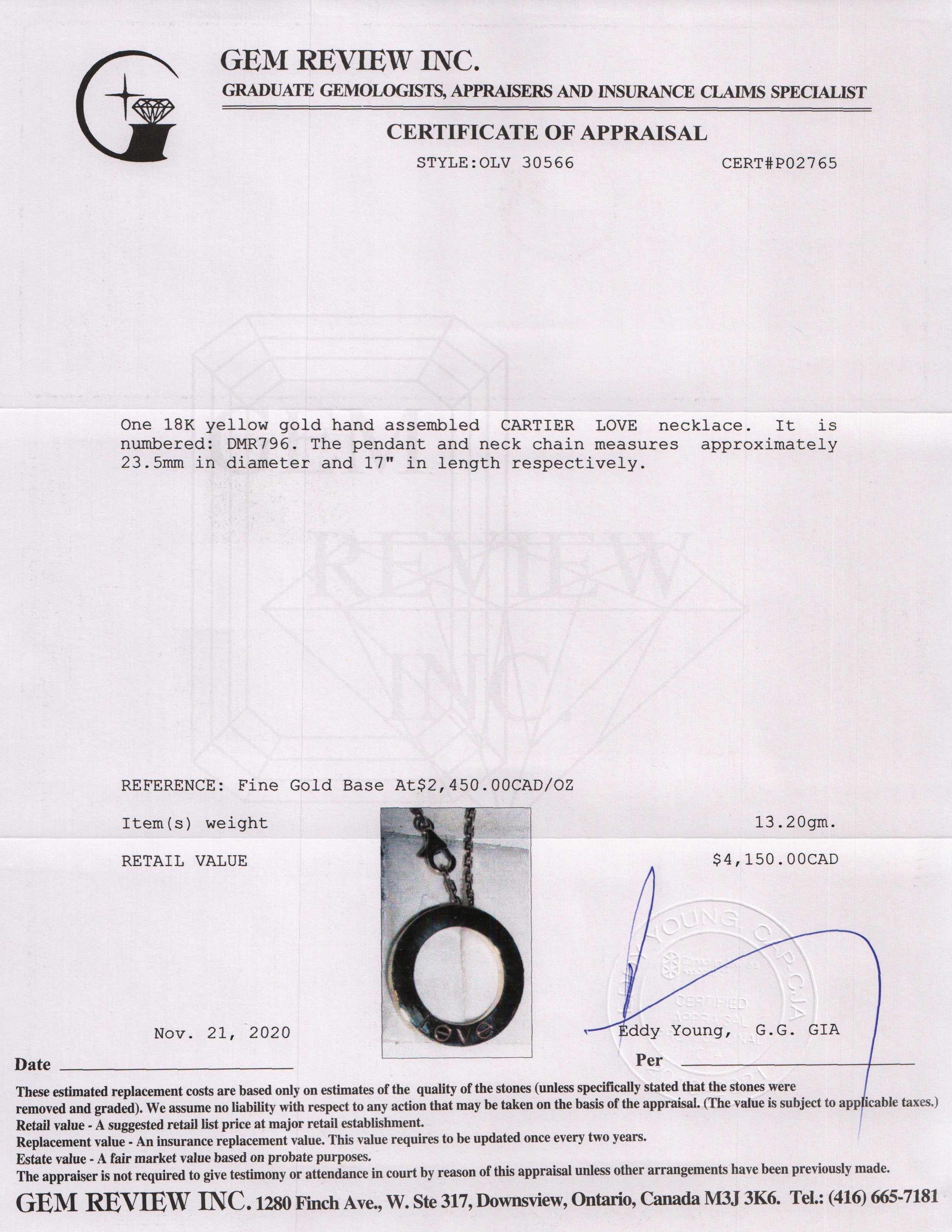 Included Items: Original Cartier Certificate and Box, Gem Review Appraisal