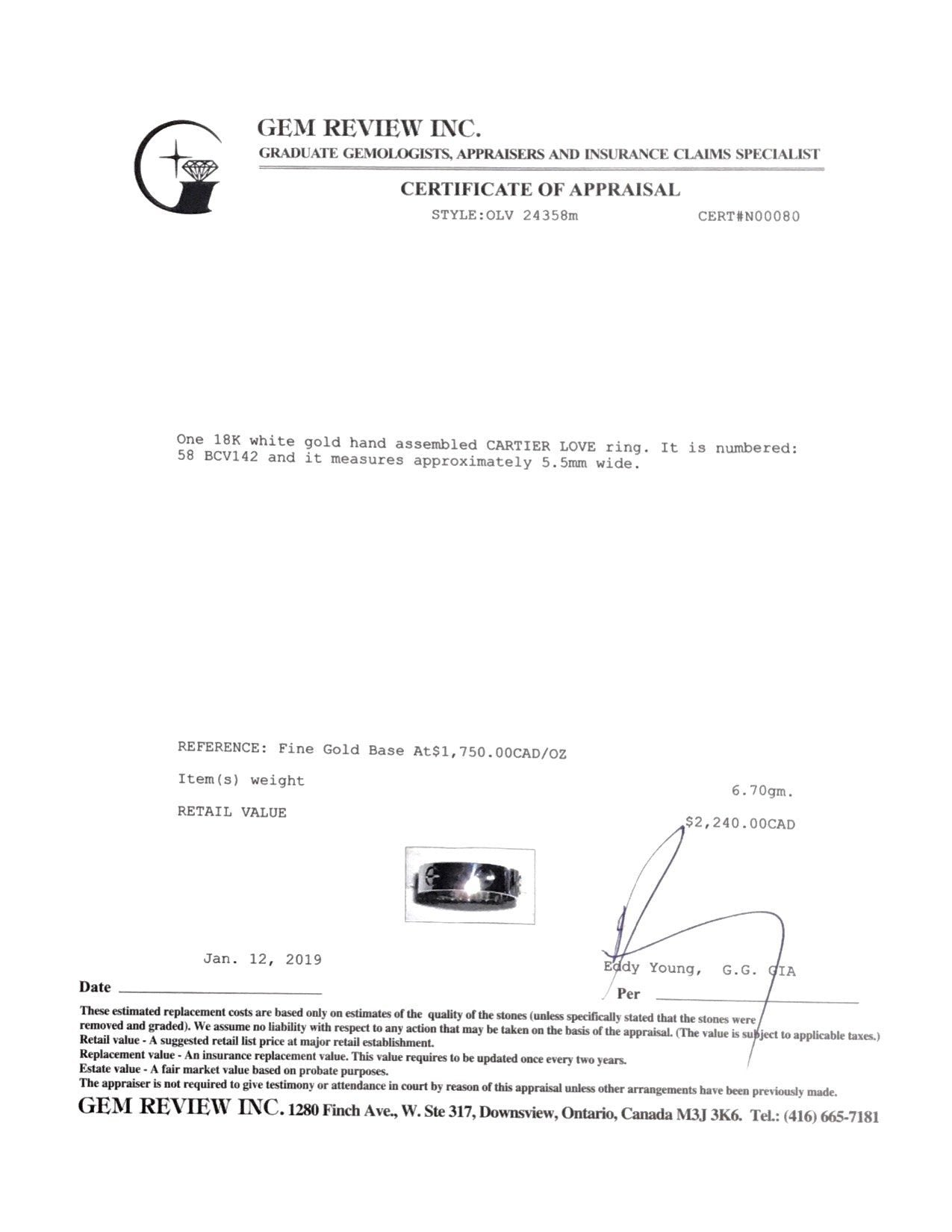 Included Items: Original Cartier Box, Receipt, and Gem Review Appraisal
