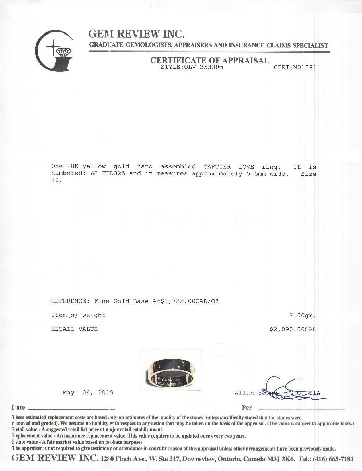 - Signature/Hallmarks: Cartier 62 FFD325 AU750