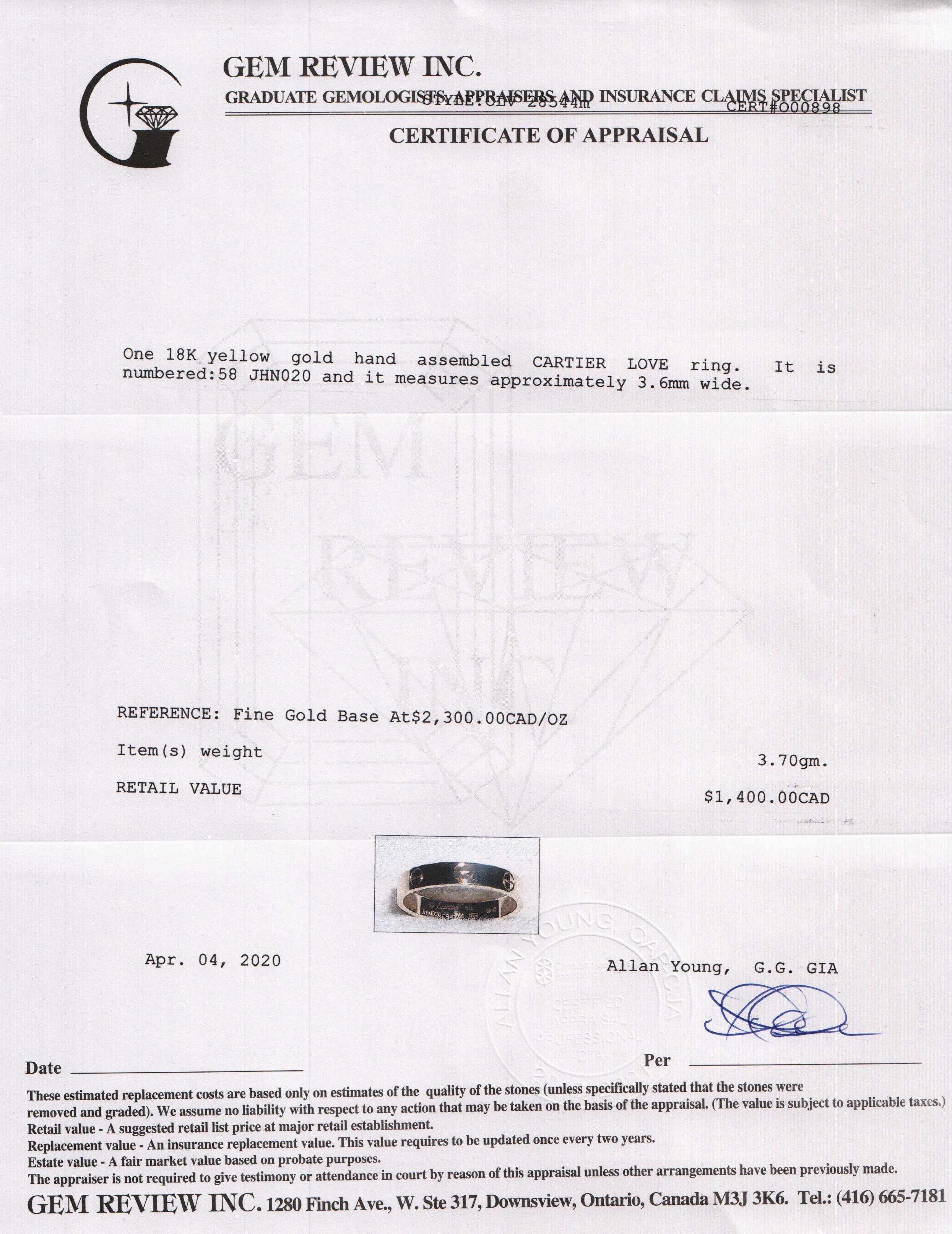 - Cartier Ring Size 58, U.S. Size 8 1/4