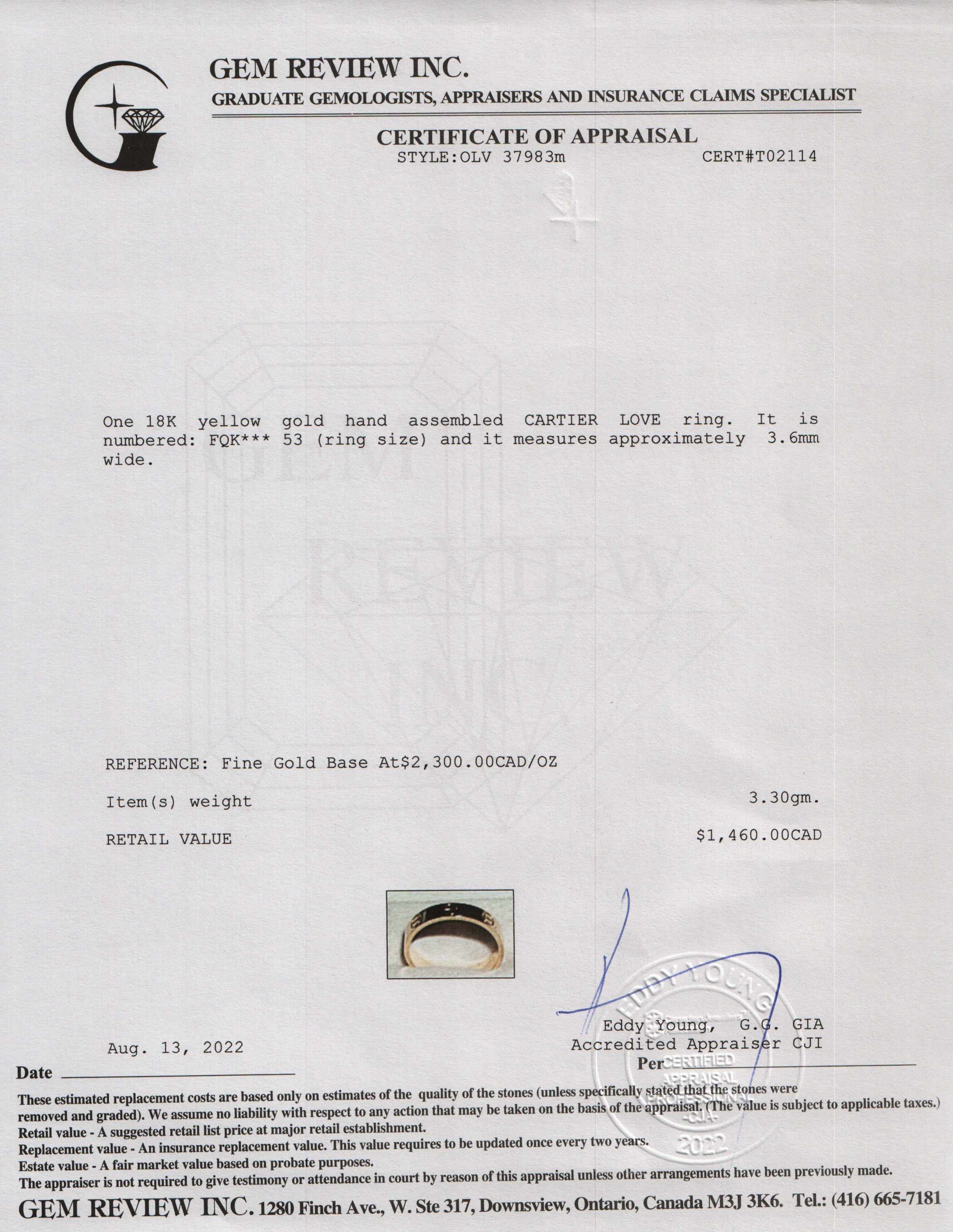 - Cartier Ring Size 53, U.S. Ring Size 6.5