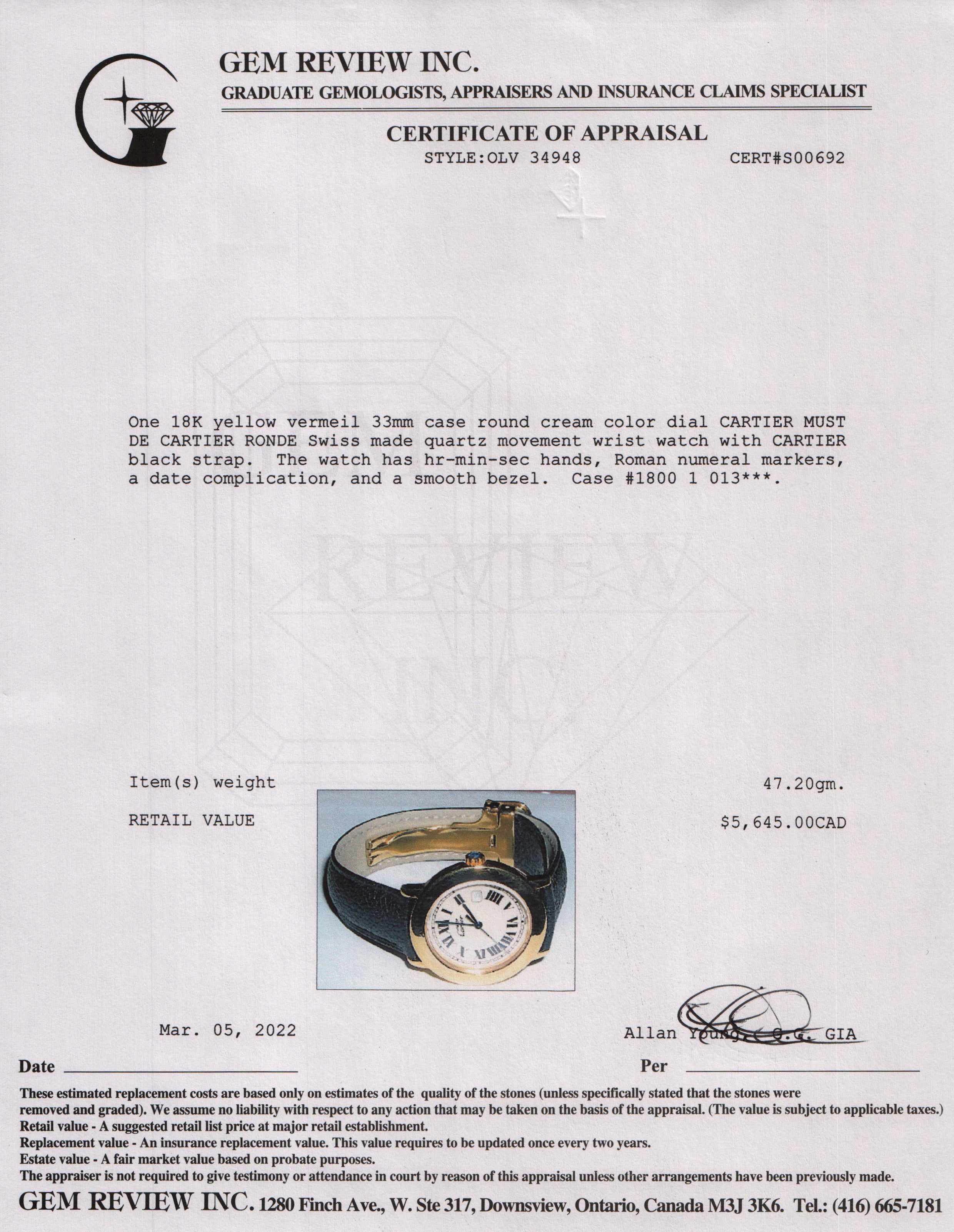 Cartier Must De Cartier Ronde Watch