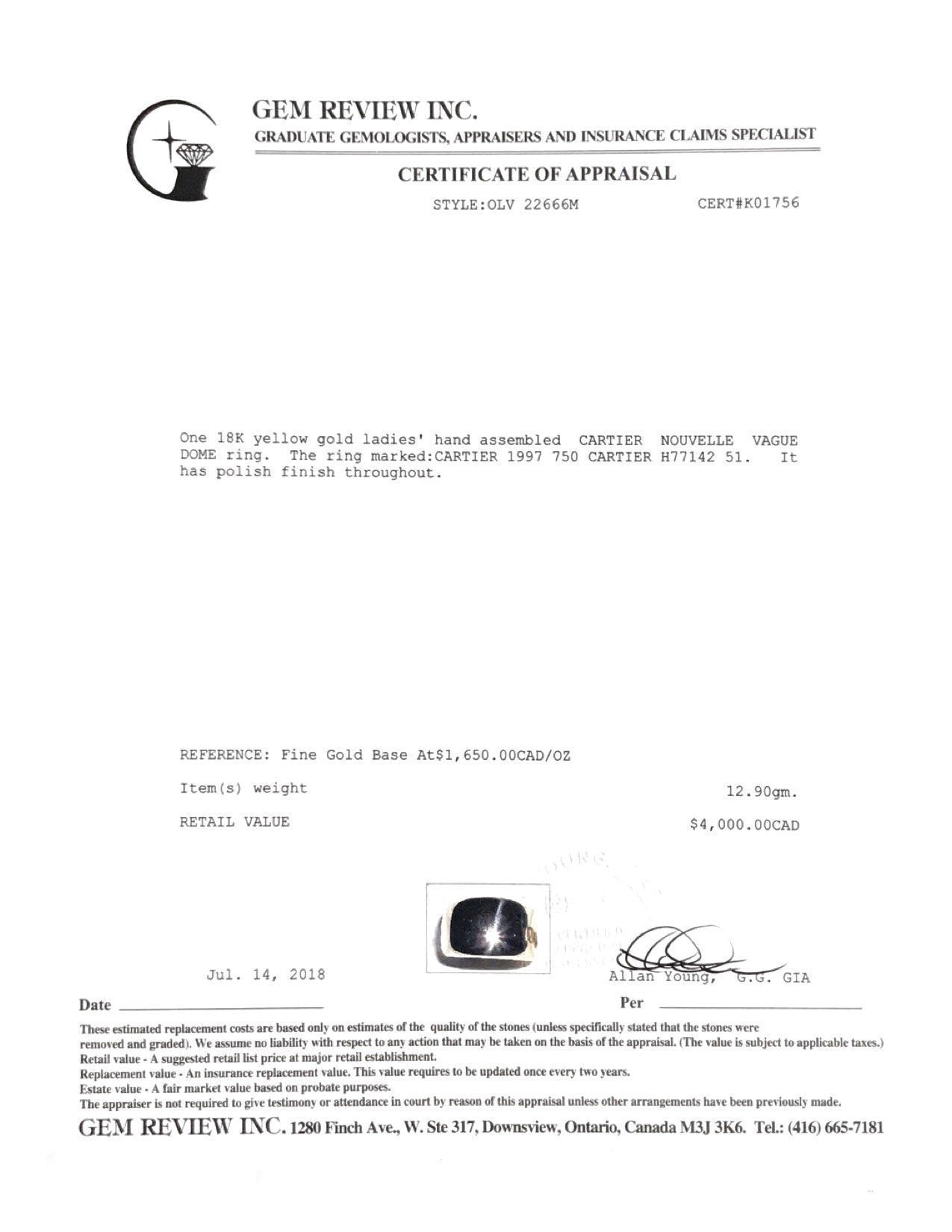 - Signature/Hallmarks: Cartier 750 1997 51 H77142