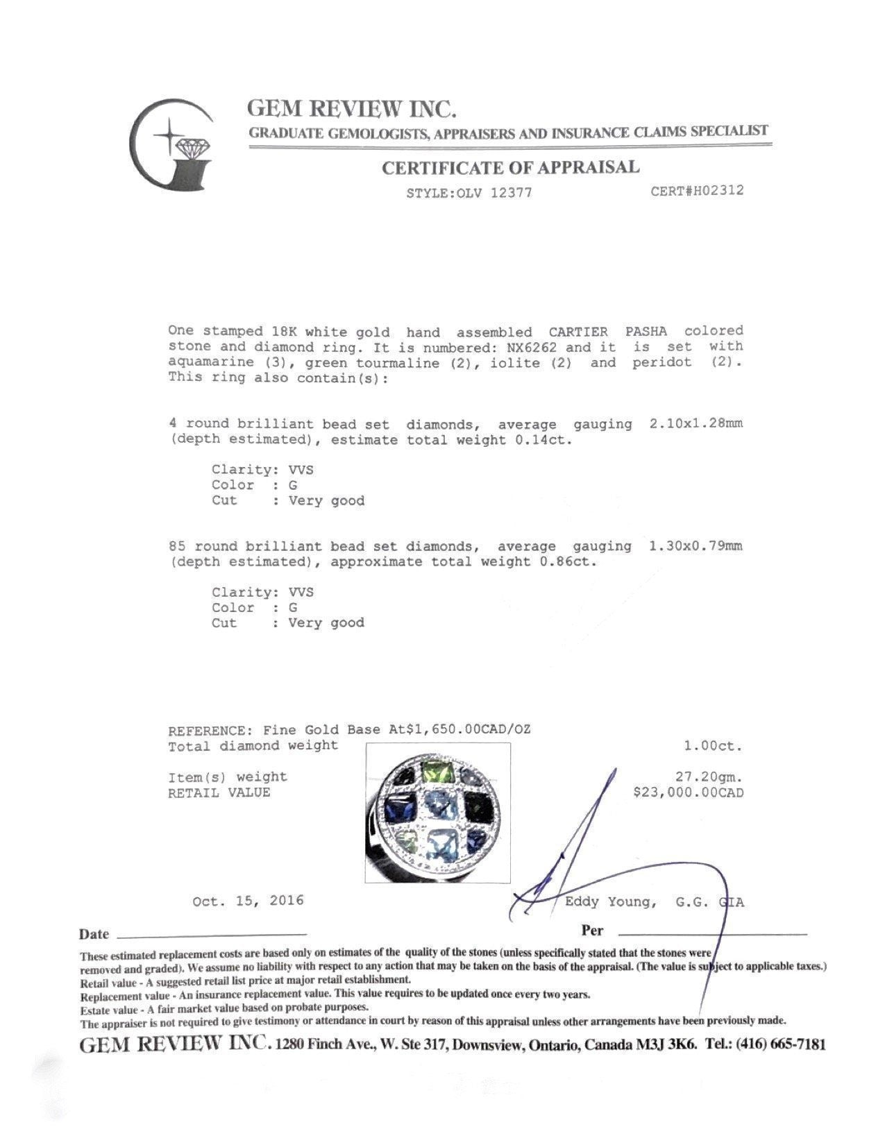 Cartier Pasha Semi Precious Stone and Diamond Ring in 18kt White Gold; Cartier Size 55 (Approximately North American Size 7 1/4); Comes with Gem Review Appraisal