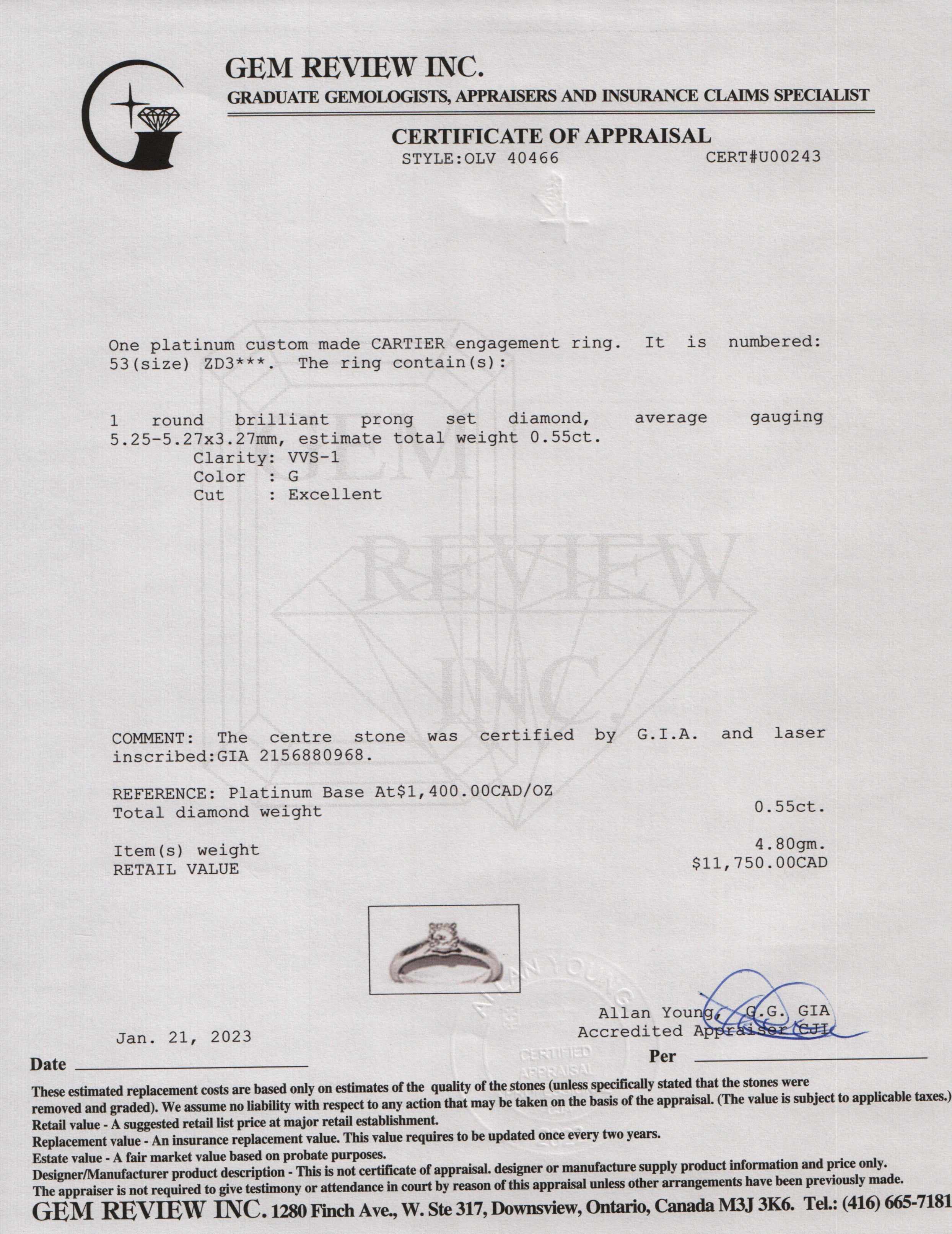 Cartier Platinum 0.55 ct. Diamond Solitaire Engagement Ring