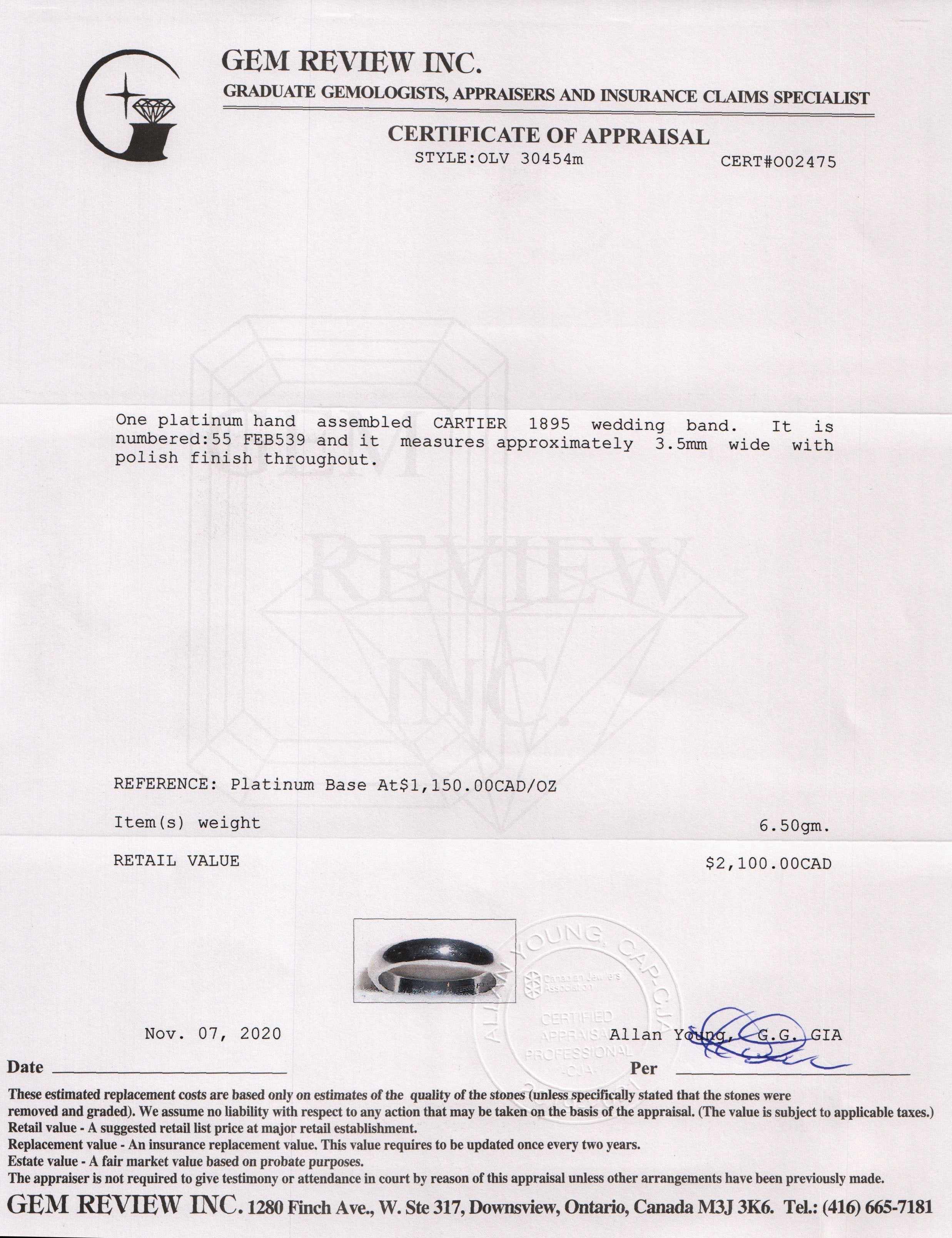 - Signature/Hallmarks: Cartier 55 FEB539 PT950
