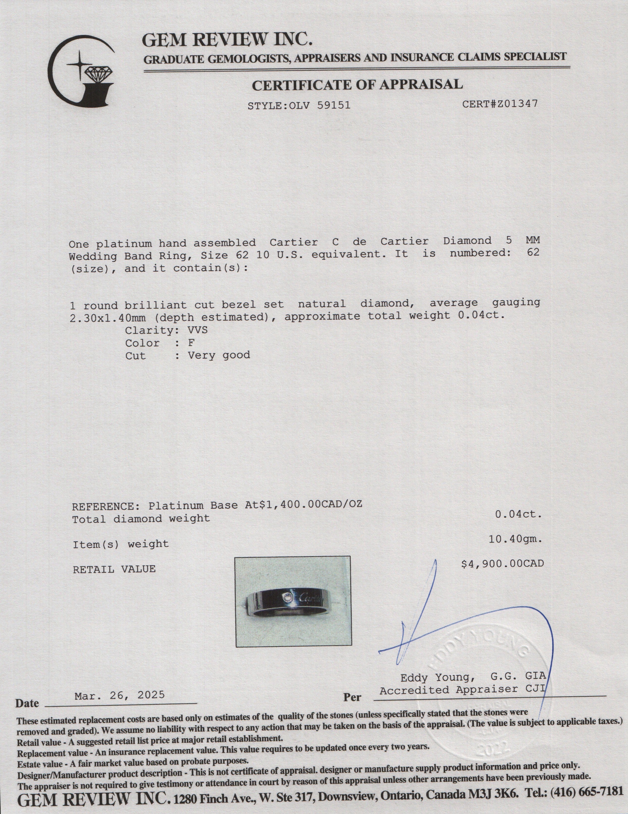 Platinum C de Diamond 5 MM Wedding Band Ring, Size 62 10