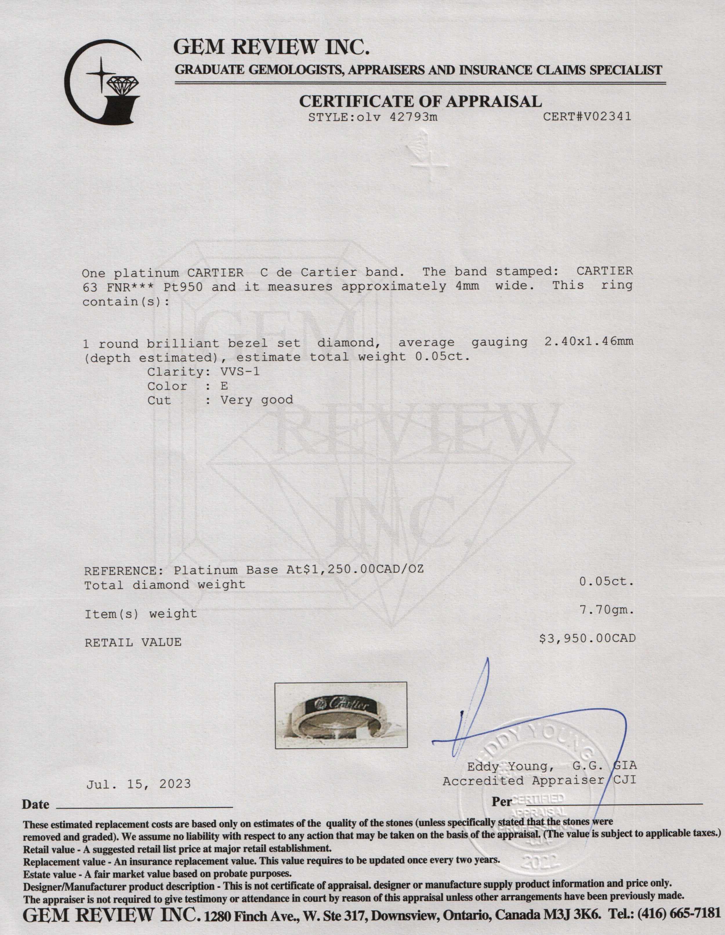 Cartier Platinum C de Cartier Diamond Wedding Band Ring