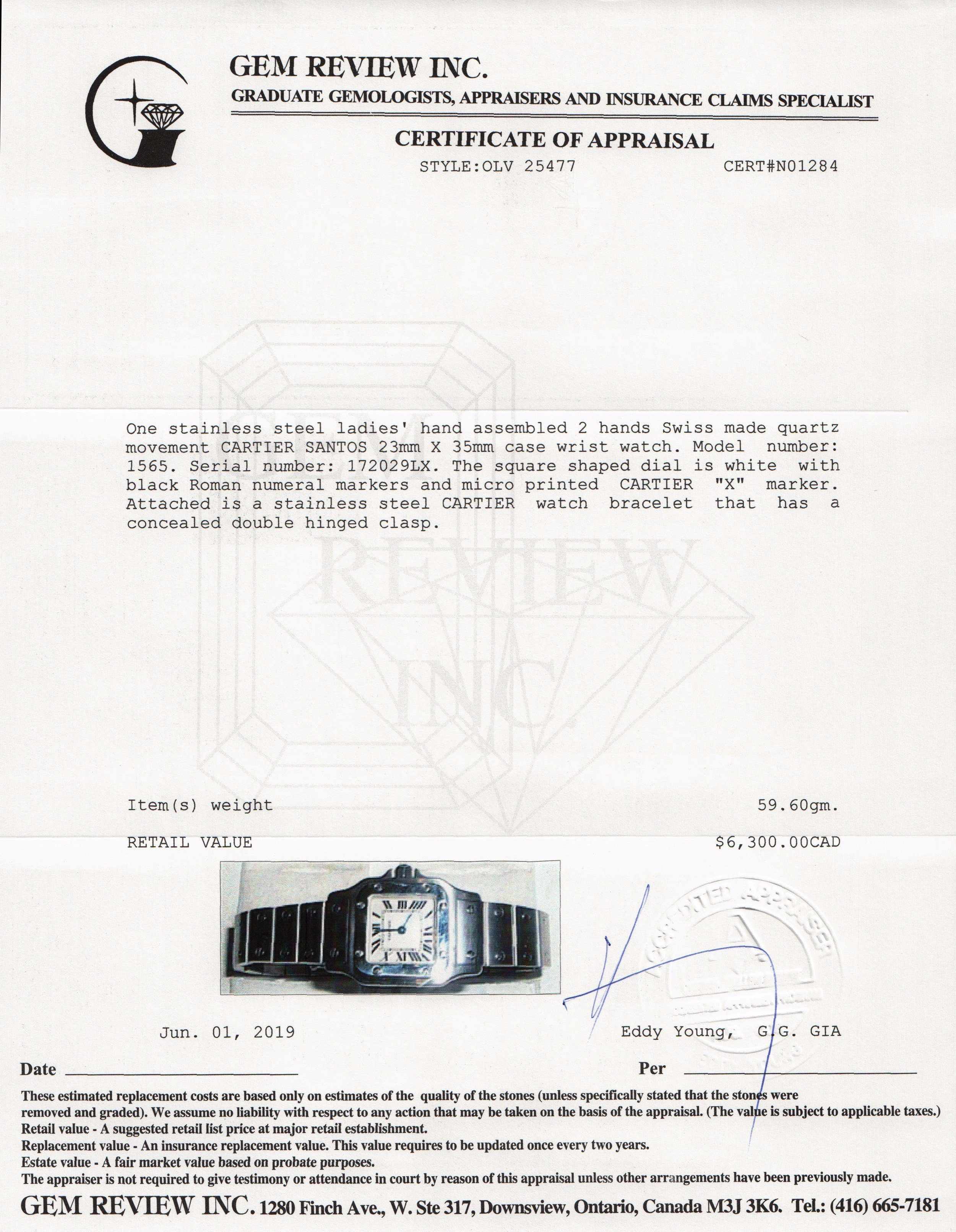 Included Items: Gem Review Appraisal and Original Cartier Box