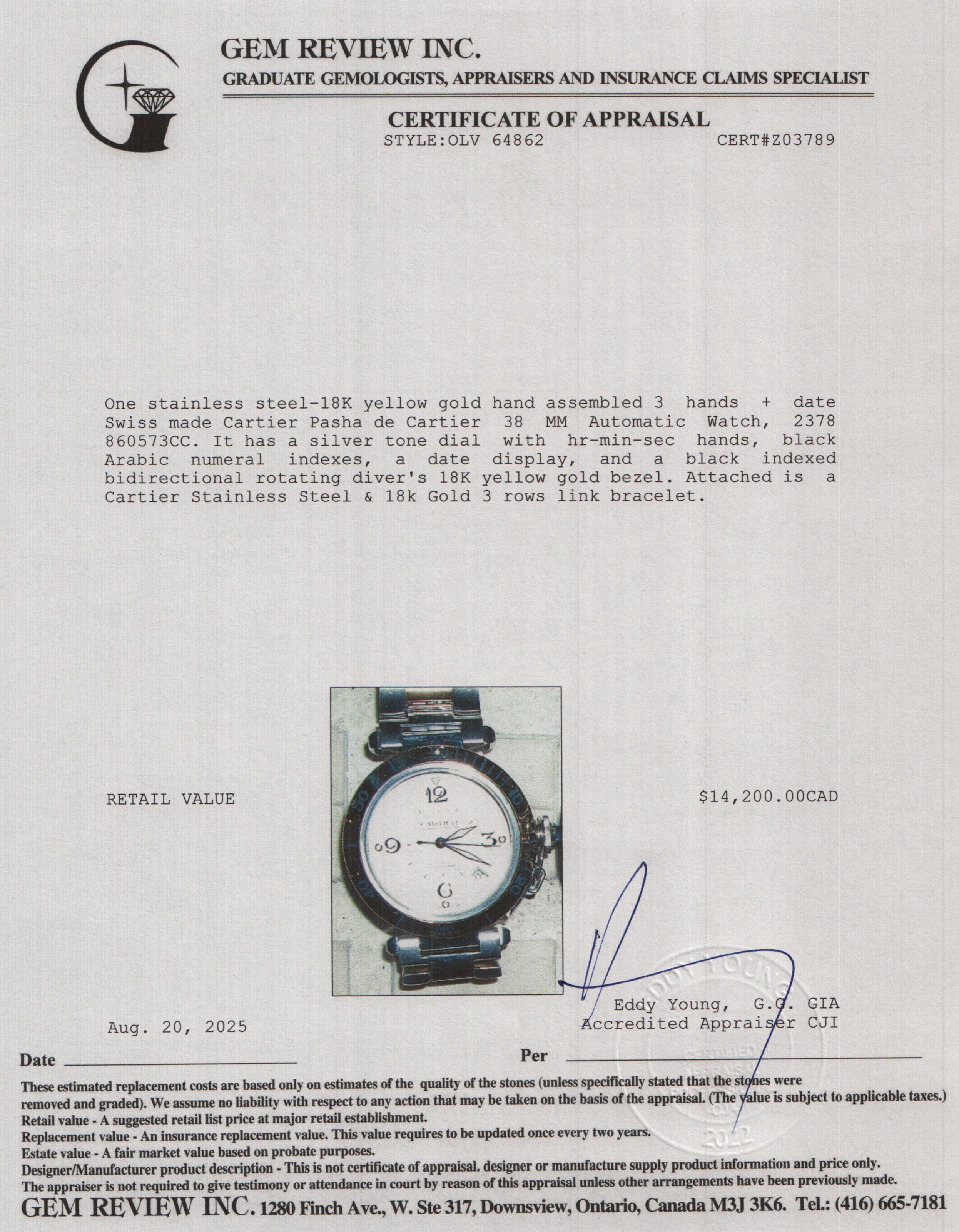 Stainless Steel & 18k Yellow Gold Pasha de 38 MM Automatic Watch 2378