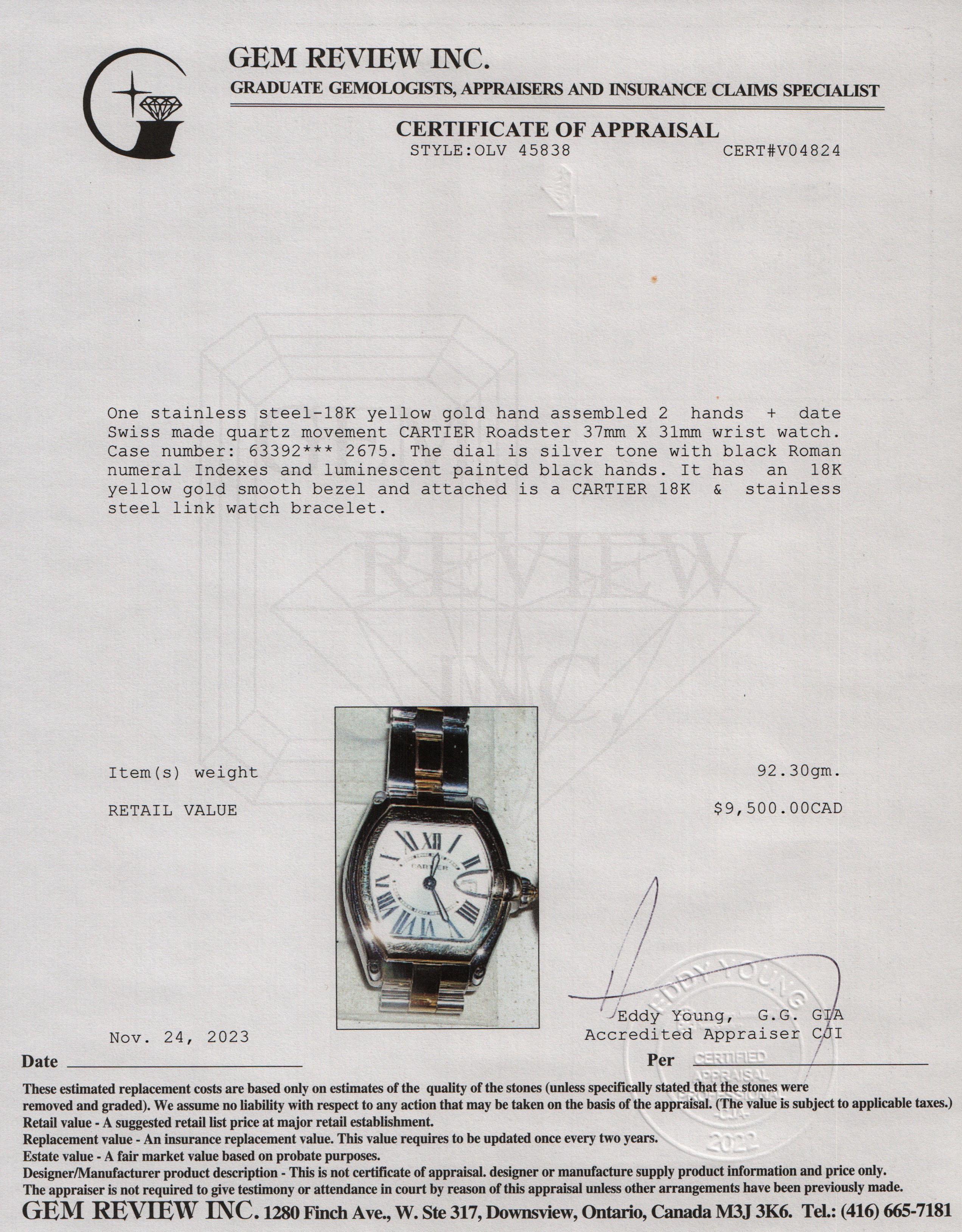 Stainless Steel & 18k Yellow Gold Roadster 31MM Quartz Watch w/ Box, Extra Strap & Papers