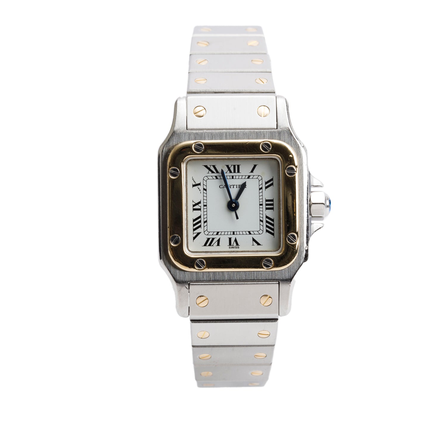 Stainless Steel & 18k Yellow Gold Santos Carree Automatic Watch, Small Model 0902 w/ Papers