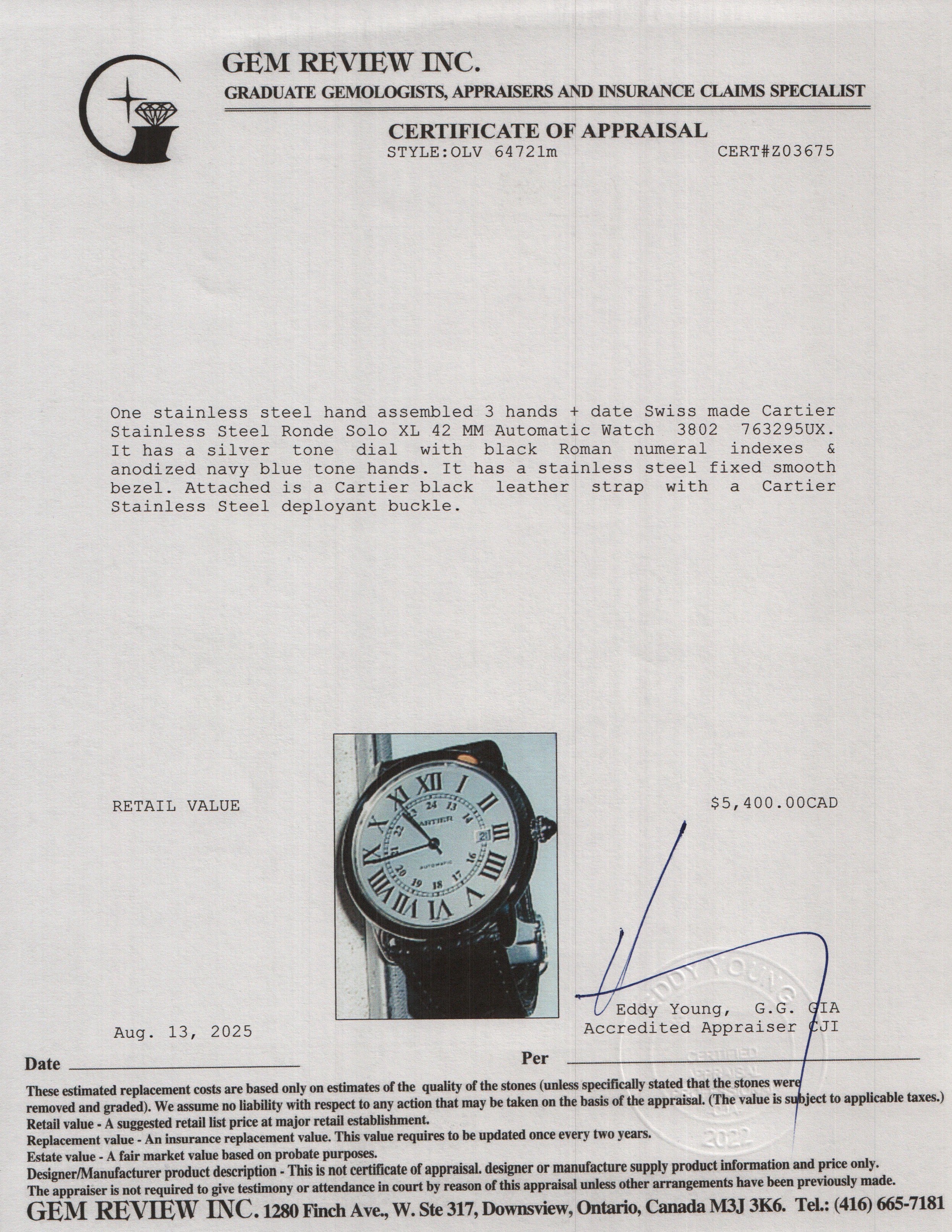 Stainless Steel Ronde Solo XL 42 MM Automatic Watch 3802