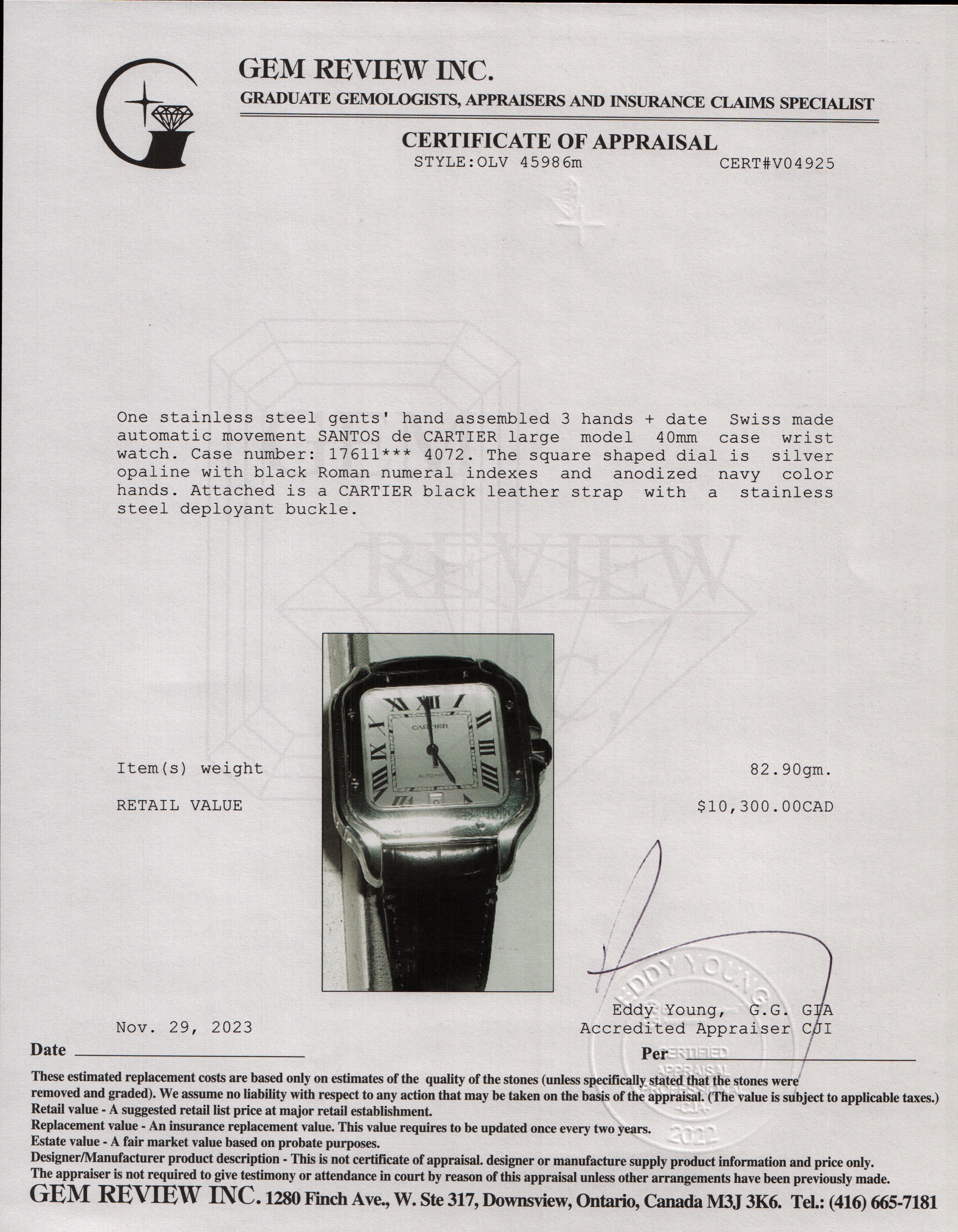 Stainless Steel Santos de Watch, Large Model w/ Box, Papers & Extra Straps