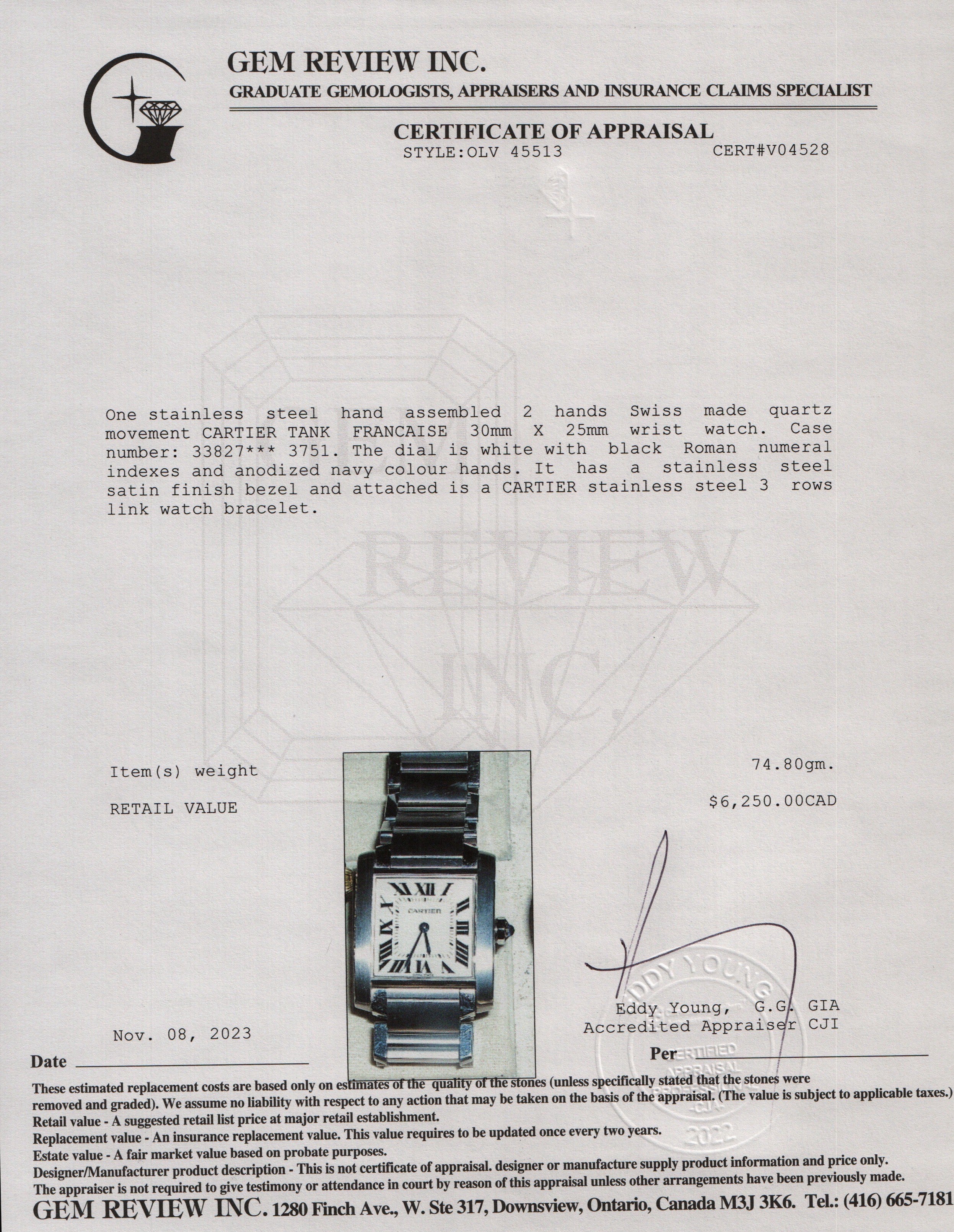 Stainless Steel Tank Francaise Quartz Watch, Medium Model