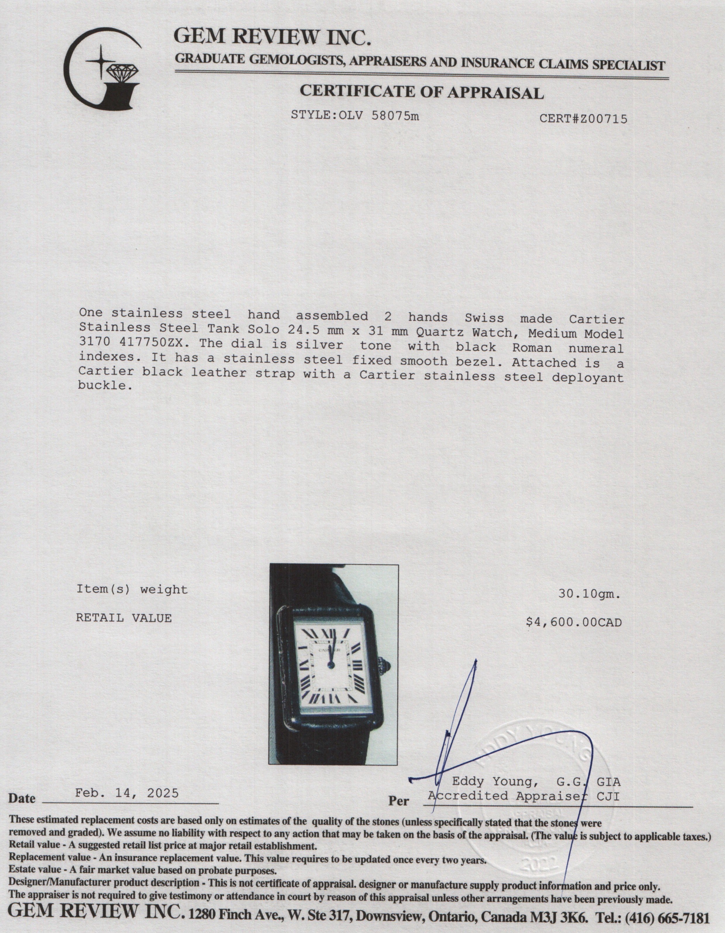 Box, Receipt, 2 Extra Leather Straps, Gem Review Appraisal