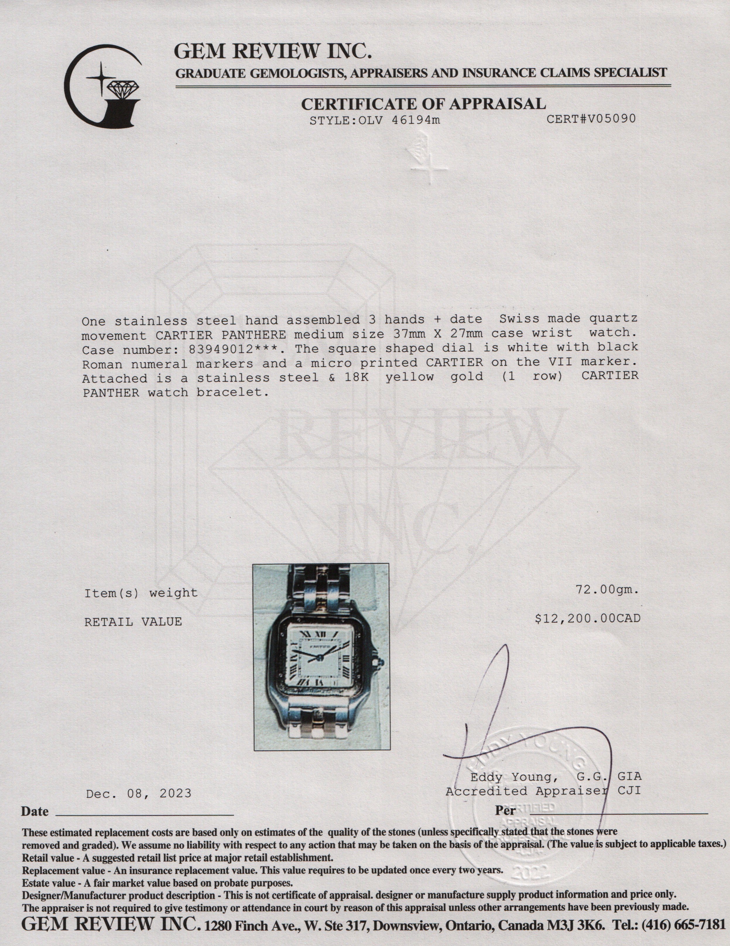 Steel & 18k Yellow Gold Panthere de Watch, Medium Model