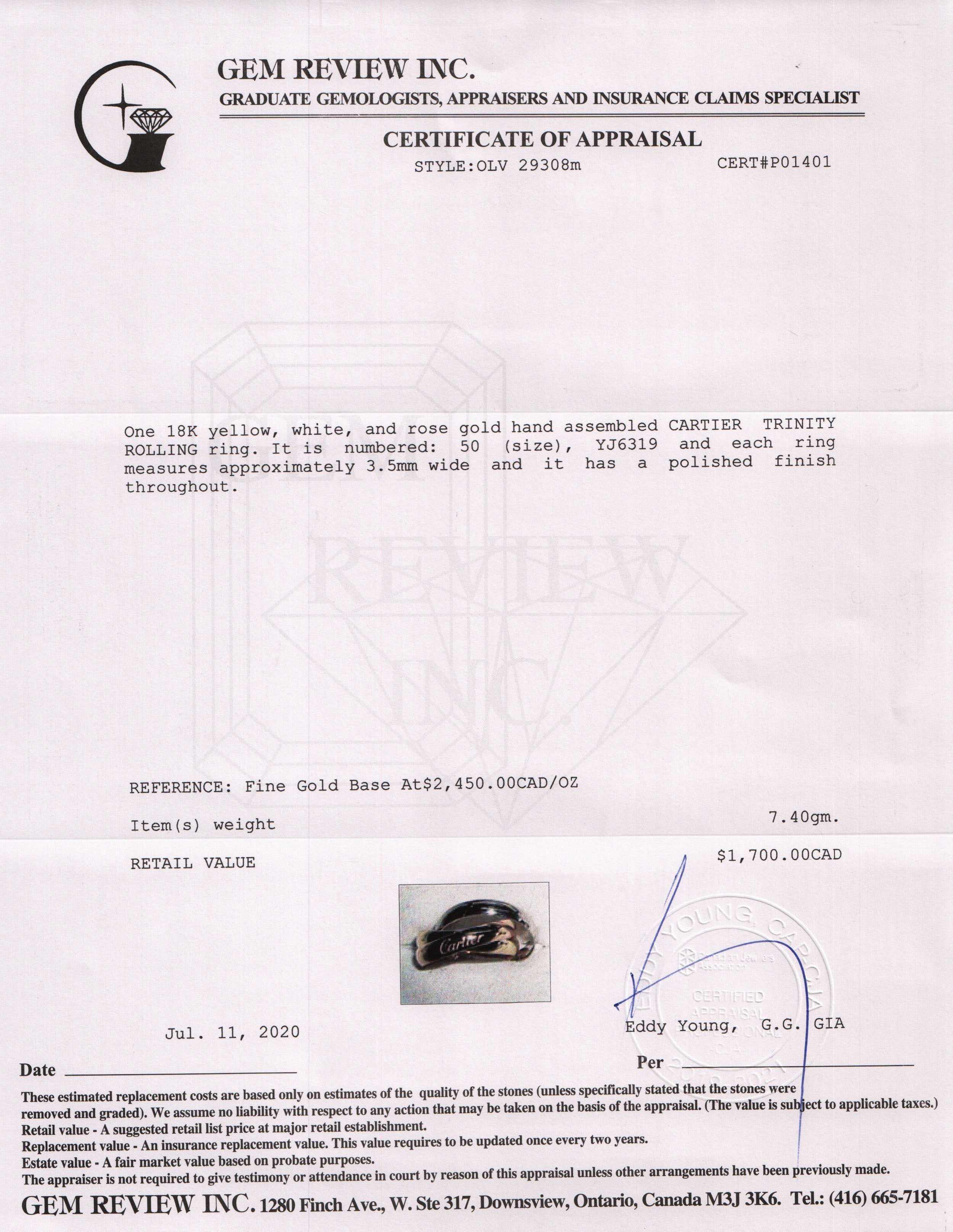 Included Items: Original Cartier Receipt, Certificate and Gem Review Appraisal