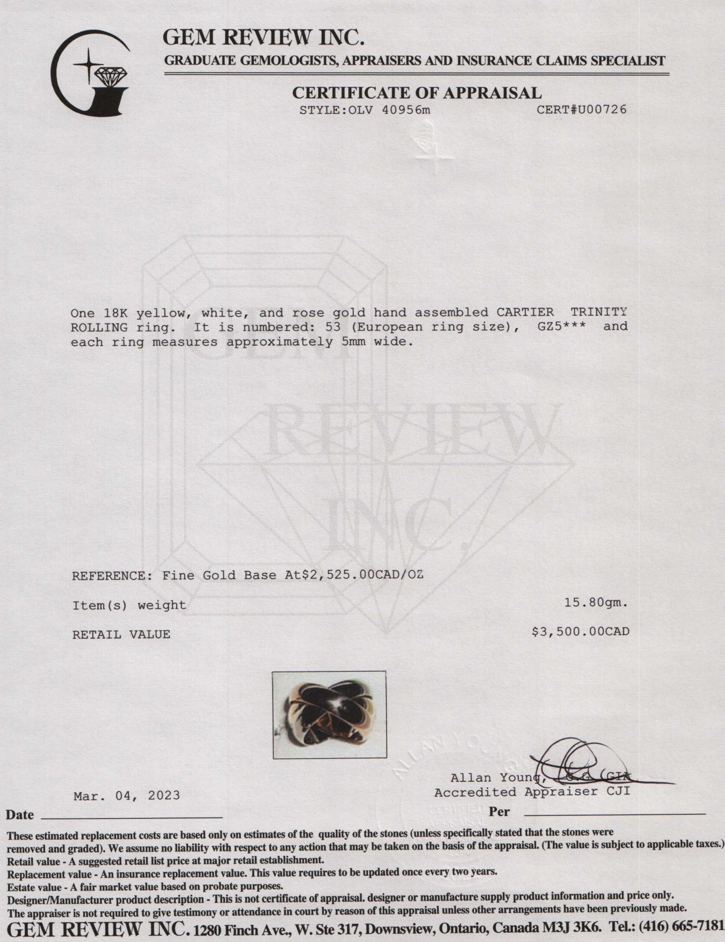 Trinity Rolling Ring, Large Model w/ Box & Certificate
