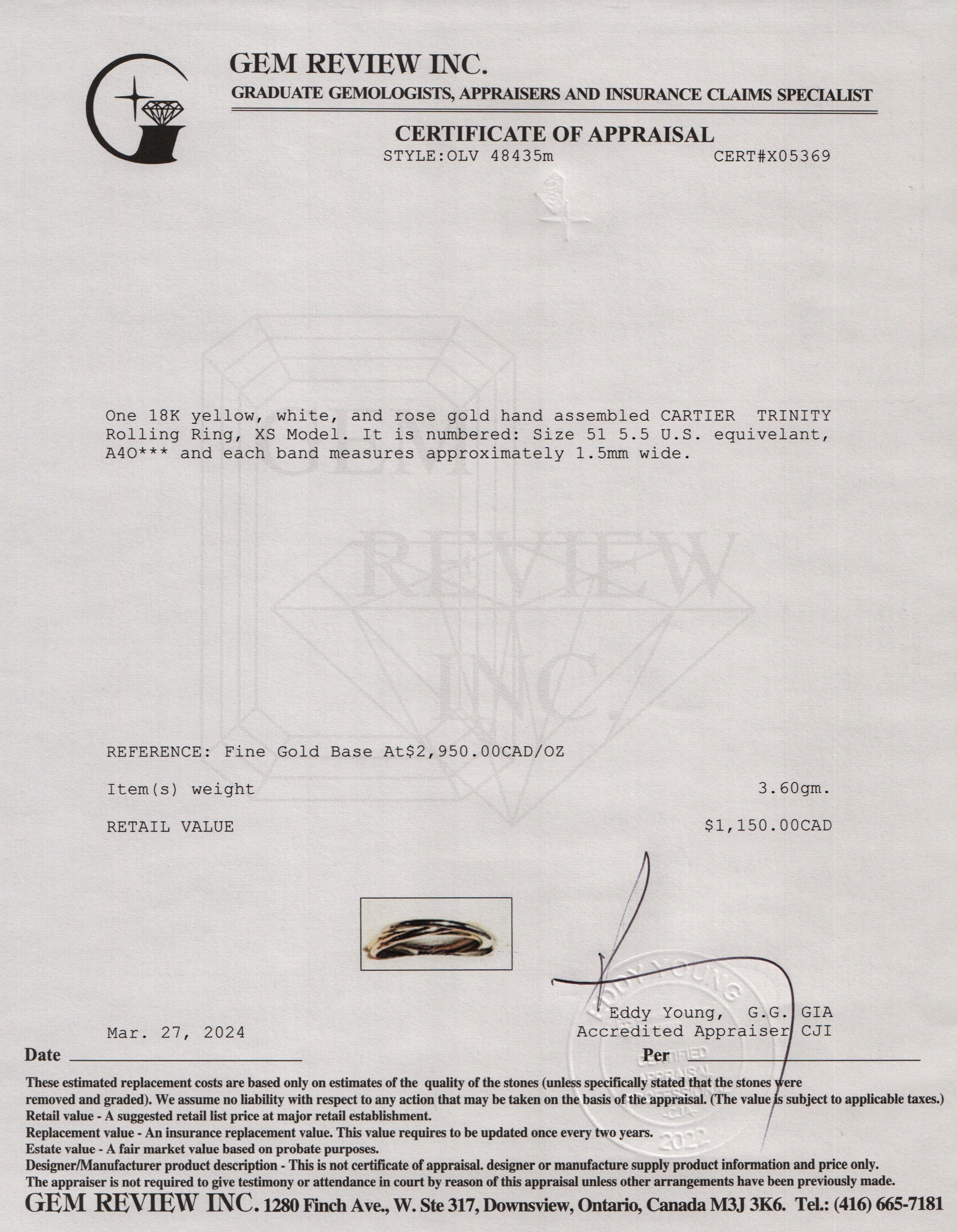Trinity Rolling Ring, XS Model, Size 51 5.5