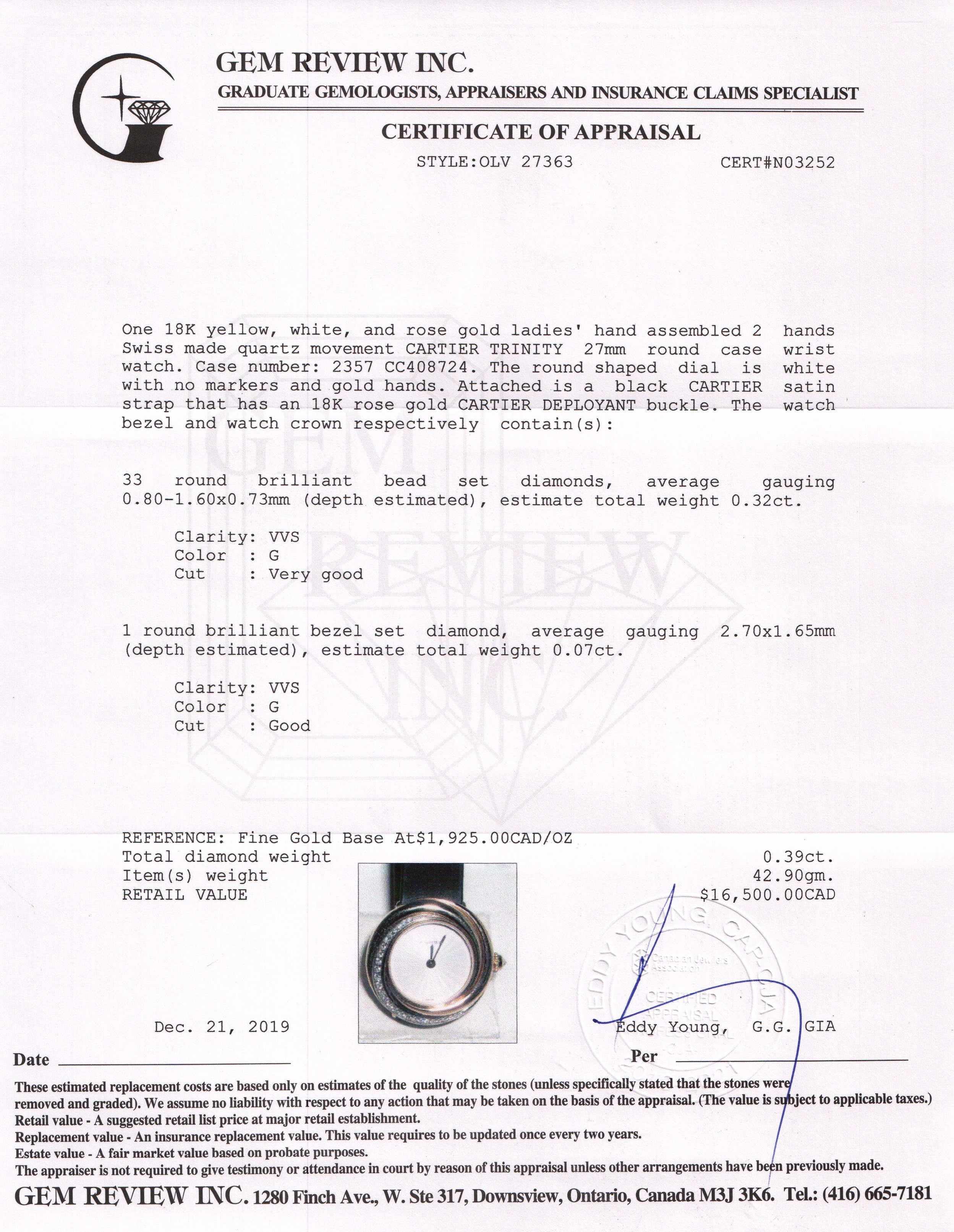Included Items: Original Cartier Pouch & Receipt for Strap and Gem Review Appraisal
