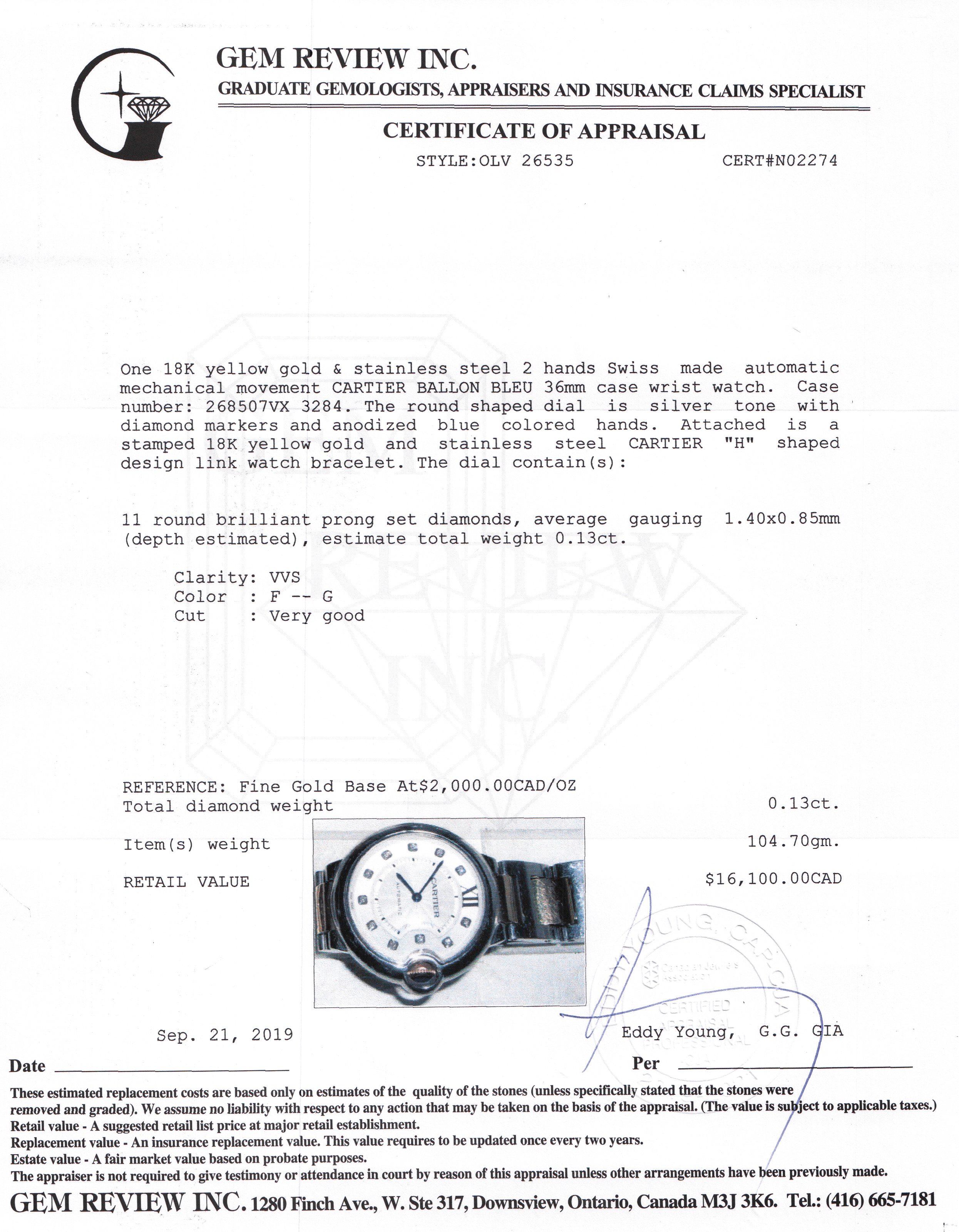 Cartier Two-Tone Ballon Bleu Watch with Diamond Dial