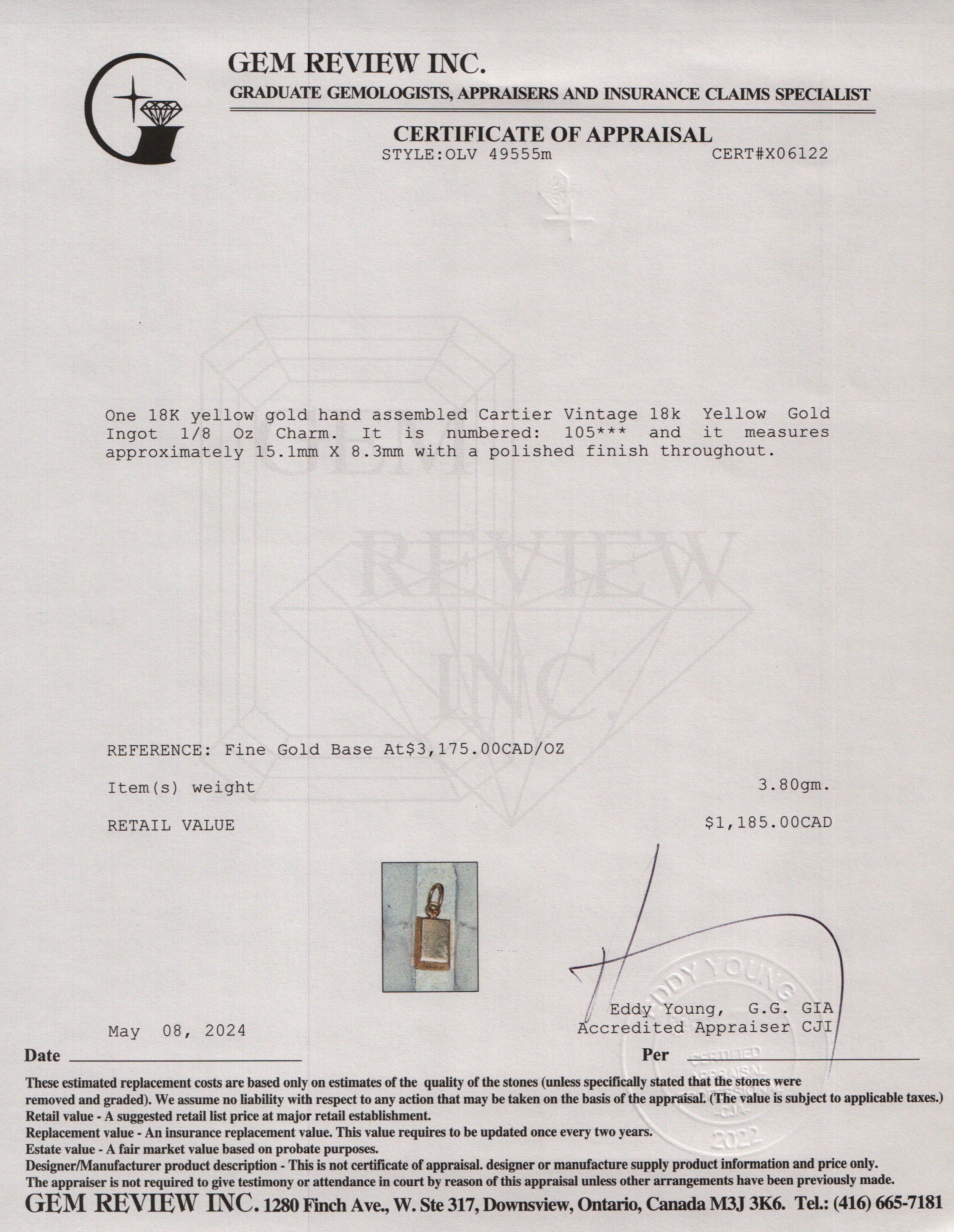 Vintage 18k Yellow Gold Ingot 1/8 Oz Charm