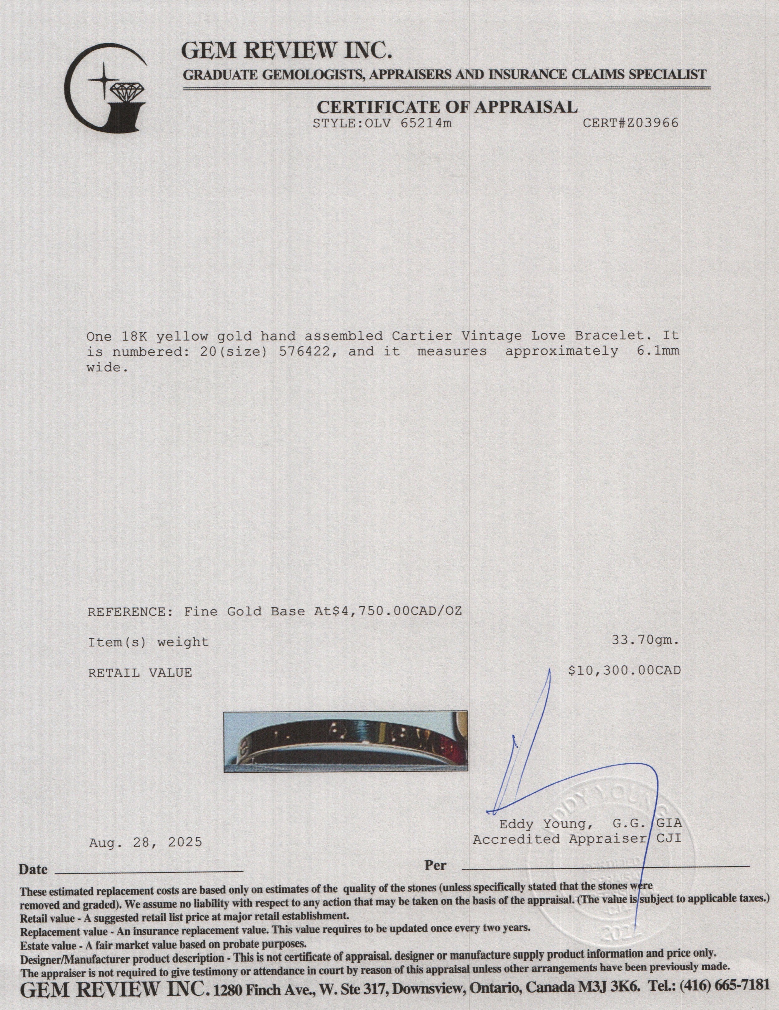 Vintage 18k Yellow Gold Love Bracelet, Classic Model, Size 20 w/ Service Papers
