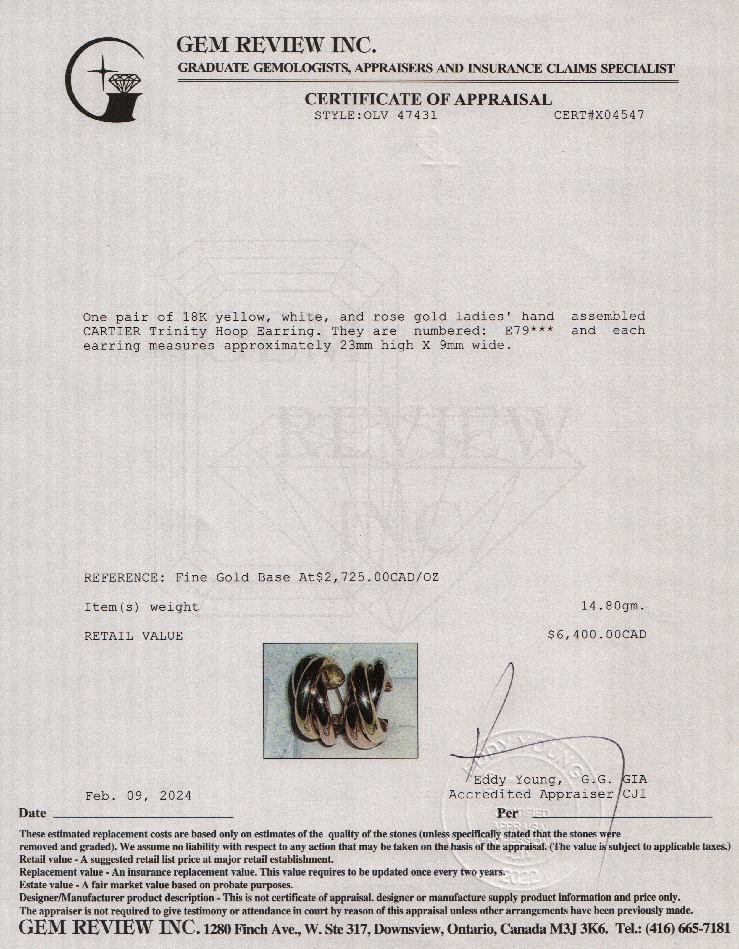 Vintage 18k Yellow, White & Rose Gold Trinity Hoop Earrings