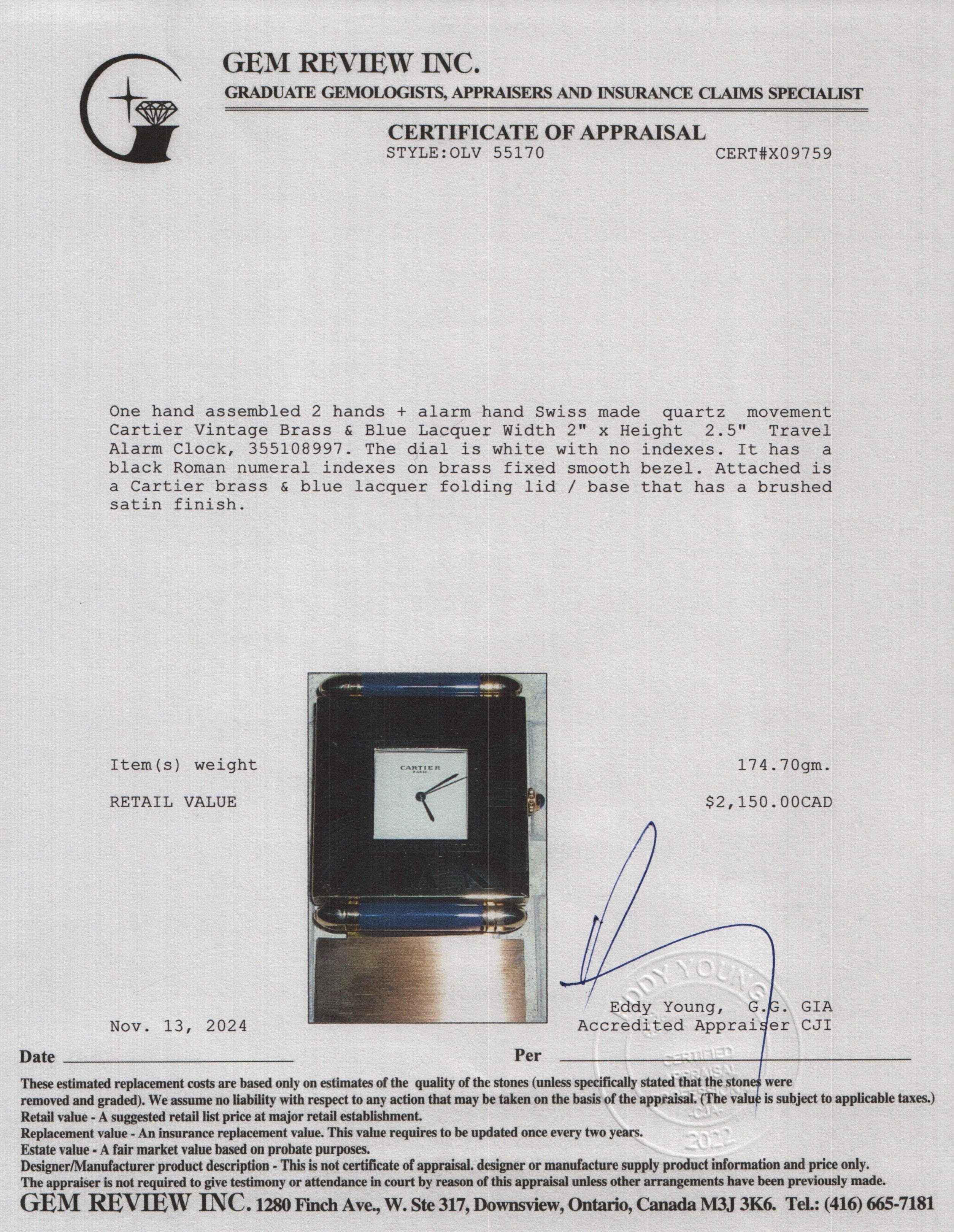 Vintage Brass & Blue Lacquer Travel Alarm Clock