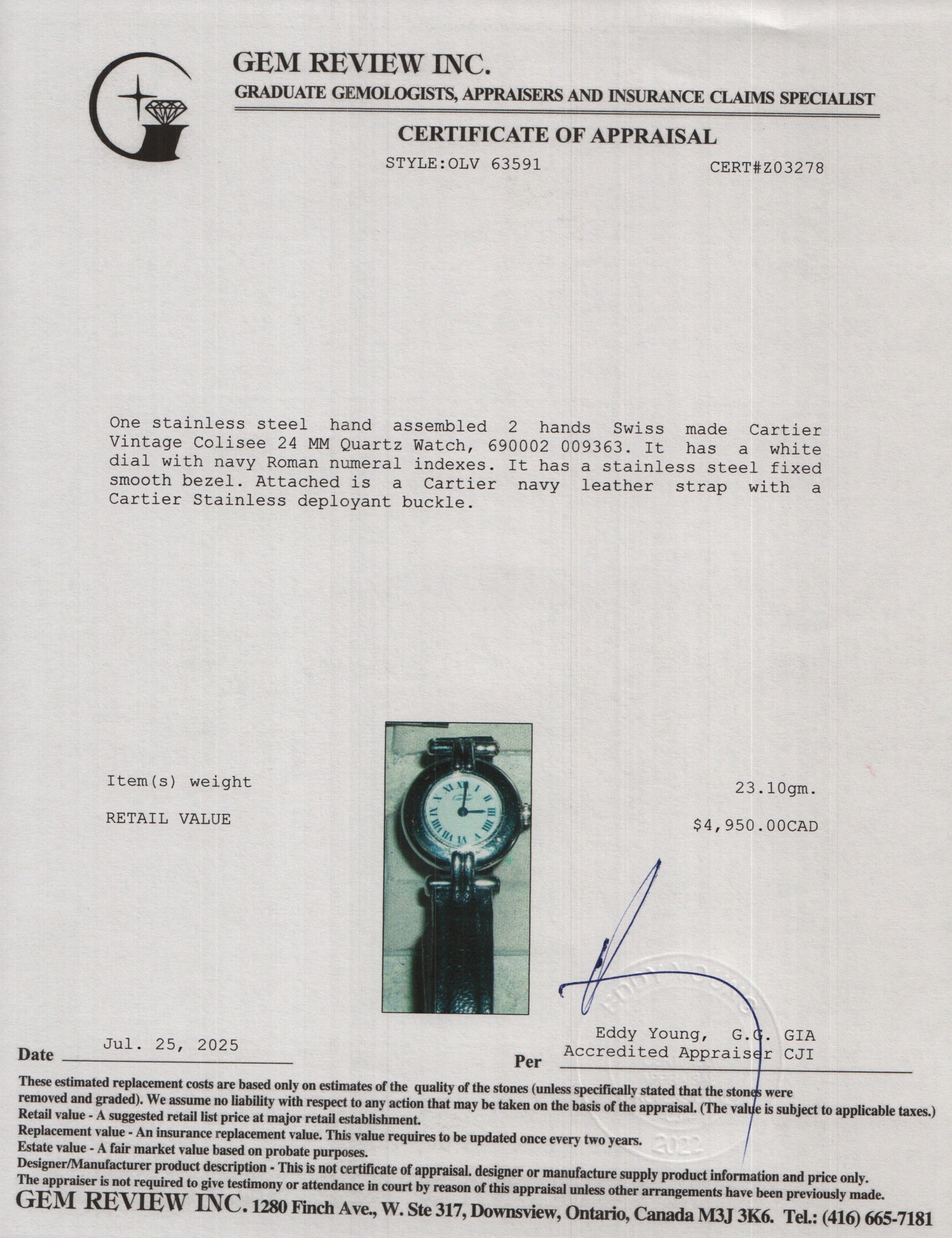 Vintage Stainless Steel Colisee 24 MM Quartz Watch White Dial w/ Box & Papers