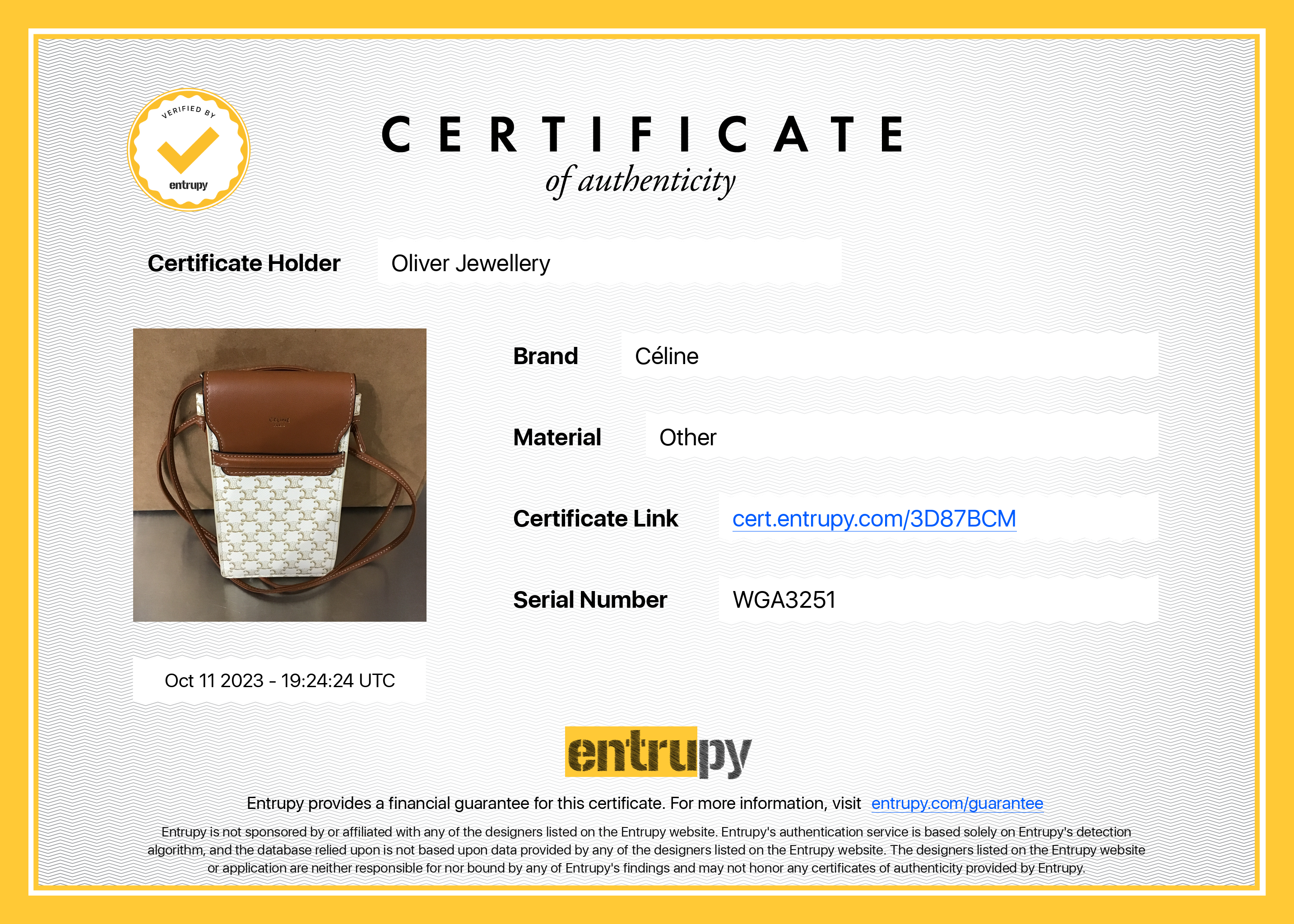 Entrupy Certificate of Authenticity