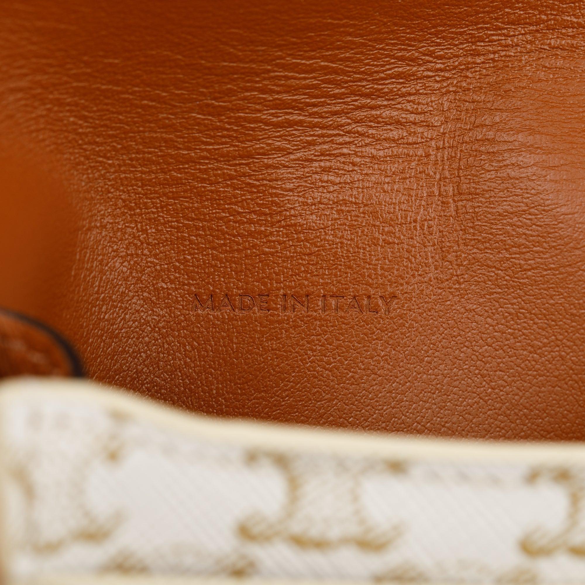 2021 White Triomphe Canvas & Tan Lambskin Leather Flap Phone Pouch