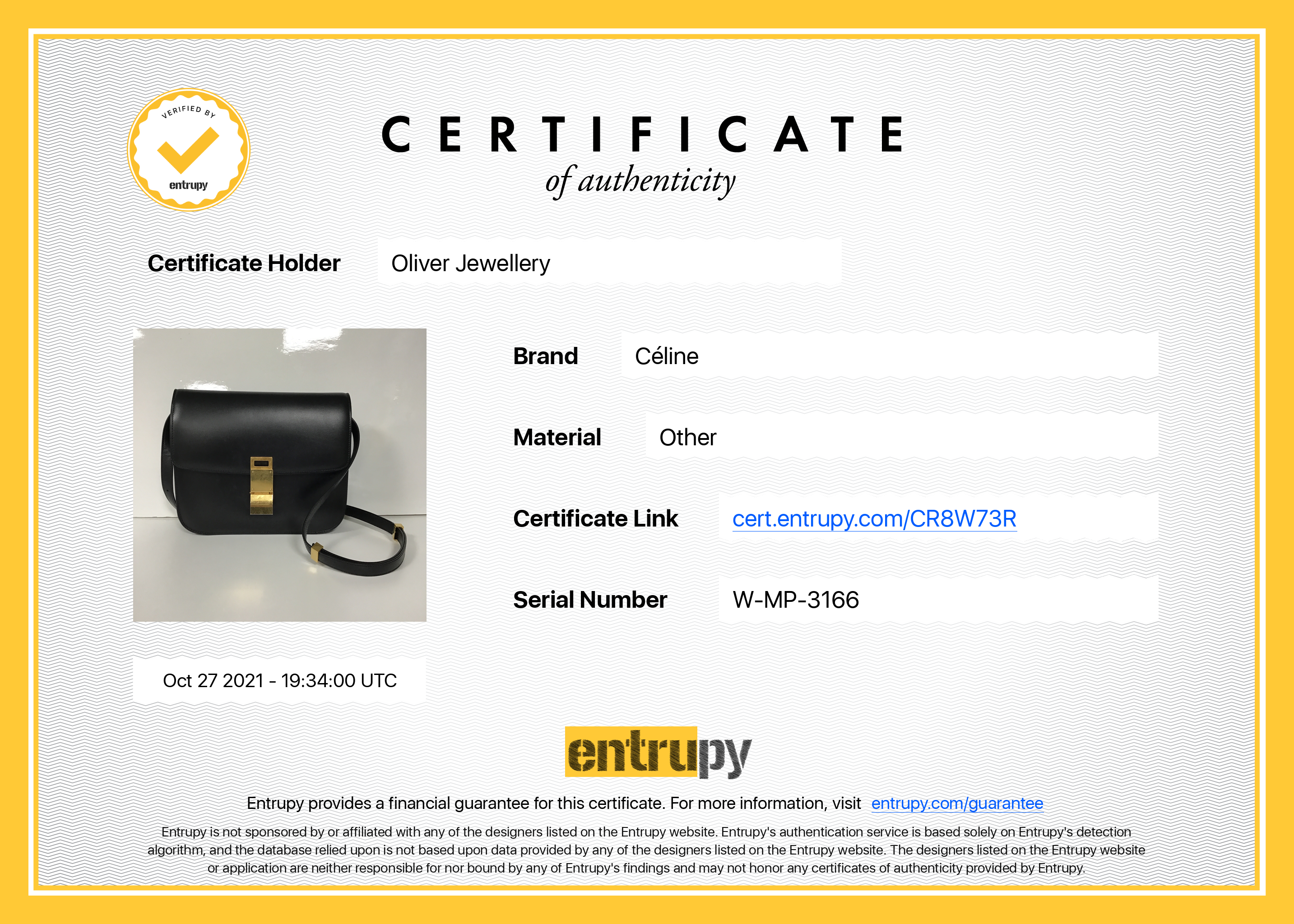 Included Items: Original Celine Dust Bag & Entrupy Certificate of Authenticity #: CR8W73R