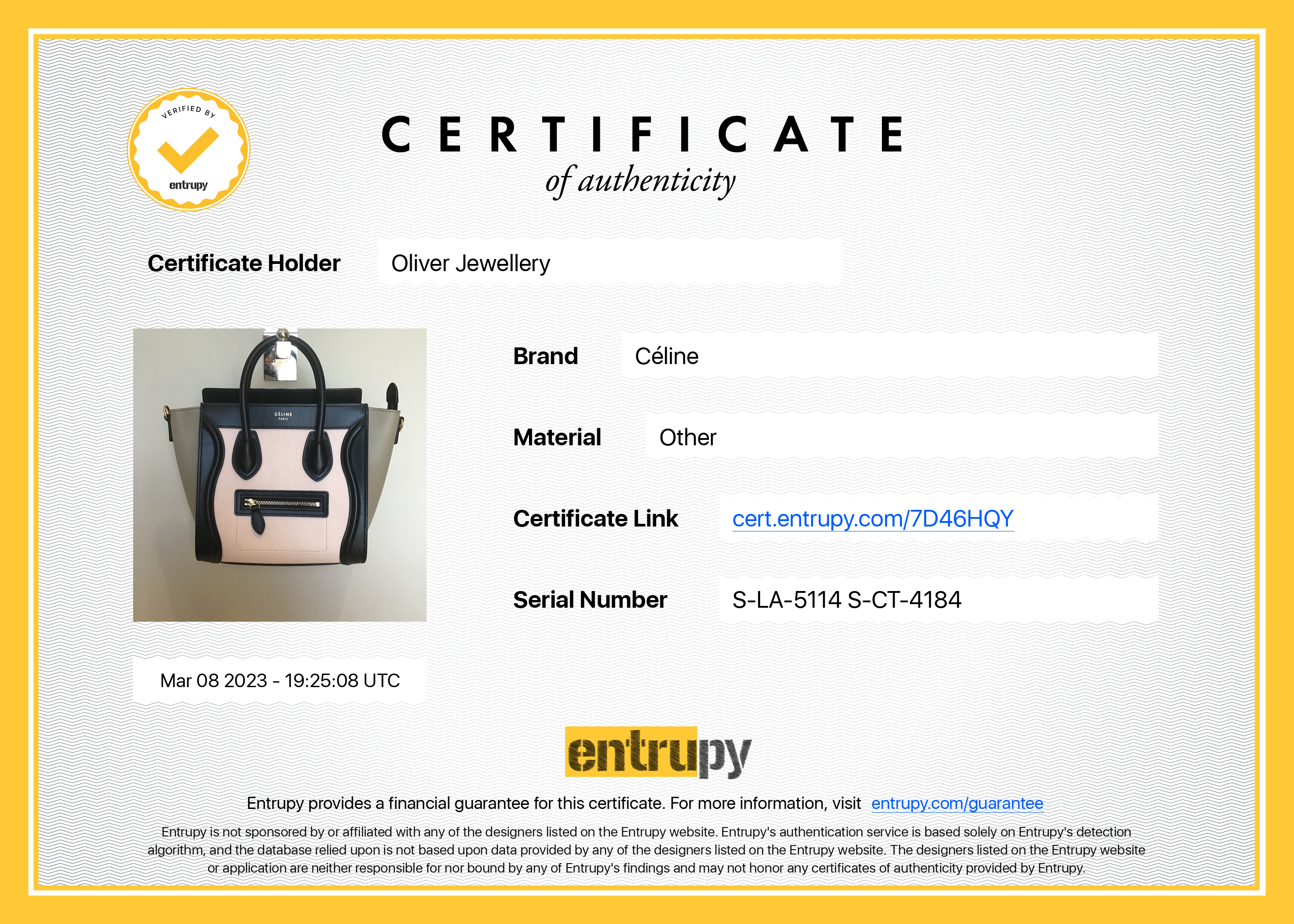 Included Items: Original Celine Tags & Entrupy Certificate of Authenticity #: 7D46HQY