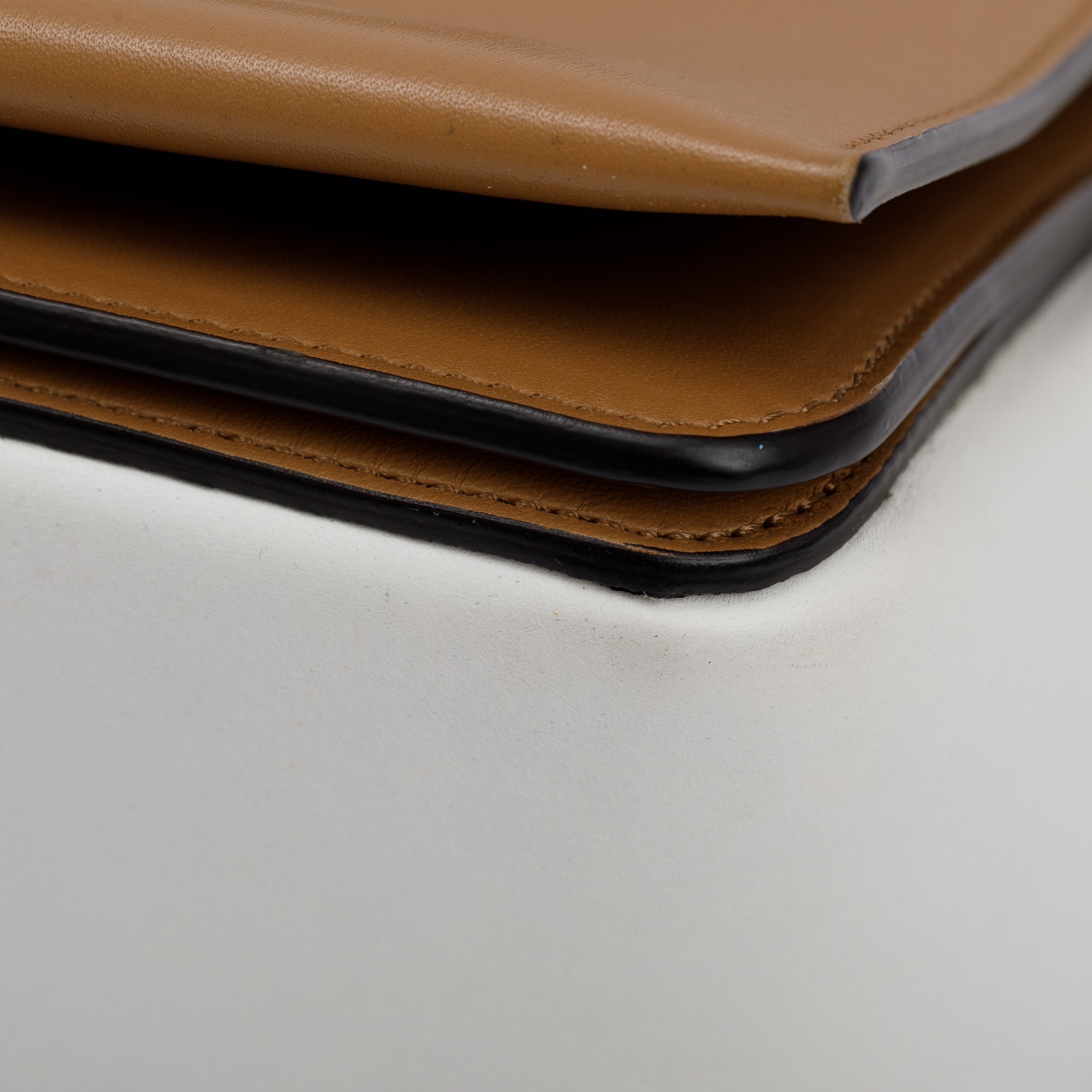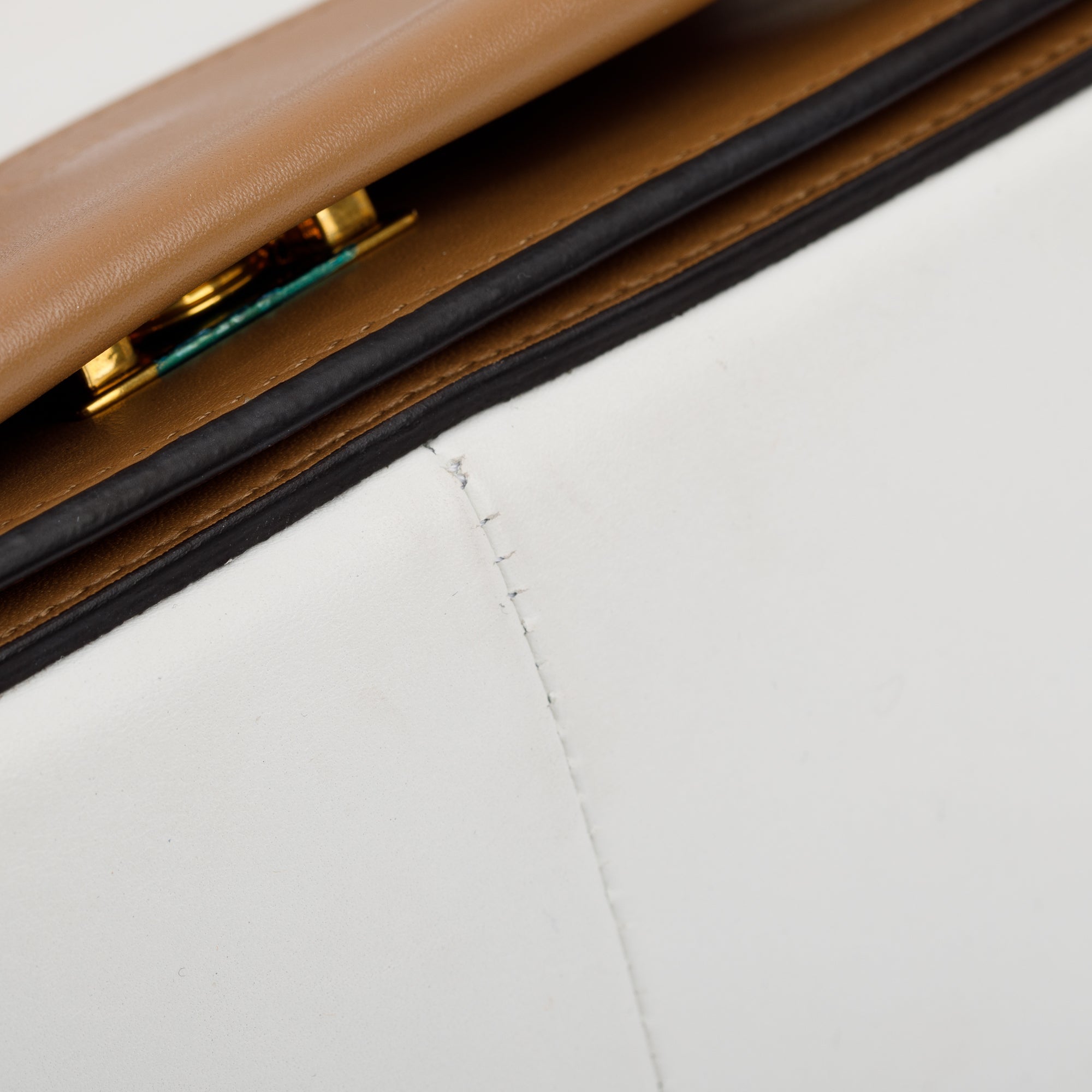 White/Tan Smooth Calfskin Leather Medium Frame Shoulder Bag