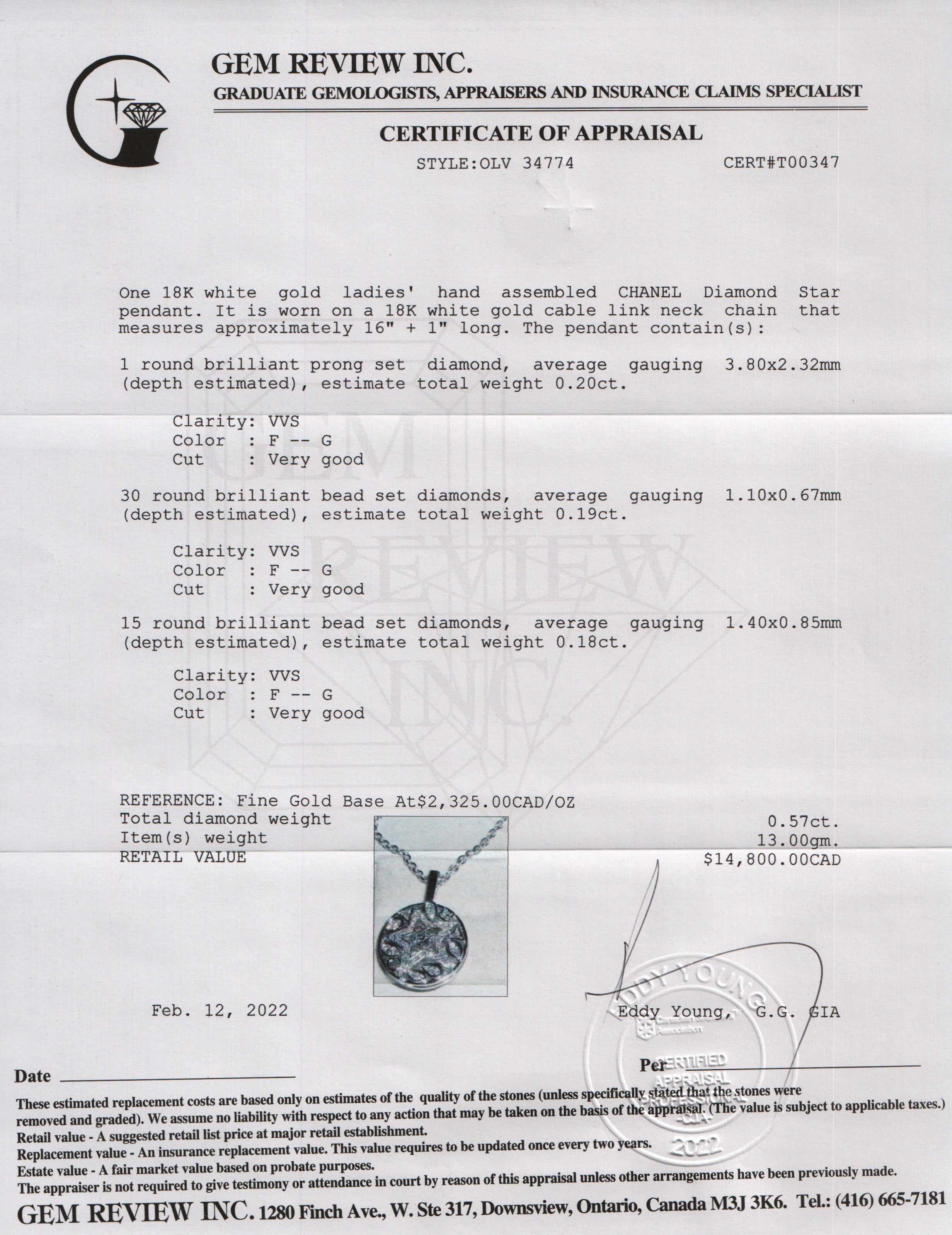 Included Items: Original Chanel Pouch & Gem Review Appraisal